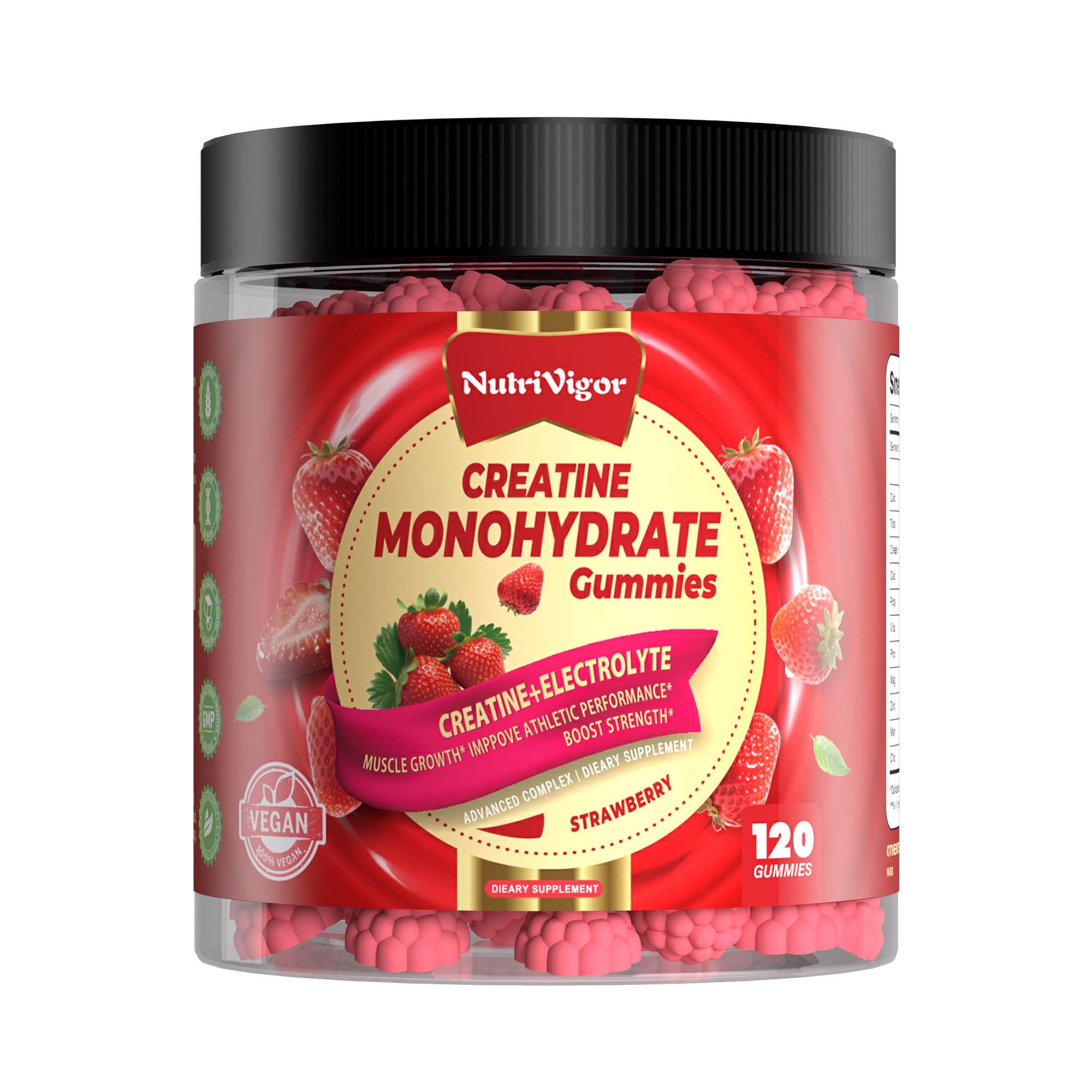 NutriVigor Creatine Monohydrate Gummies 5g for Men & Women Preworkout Gummy with Electrolyte Taurine for Muscle Growth Strength & Energy Support Strawberry 120 pcs
