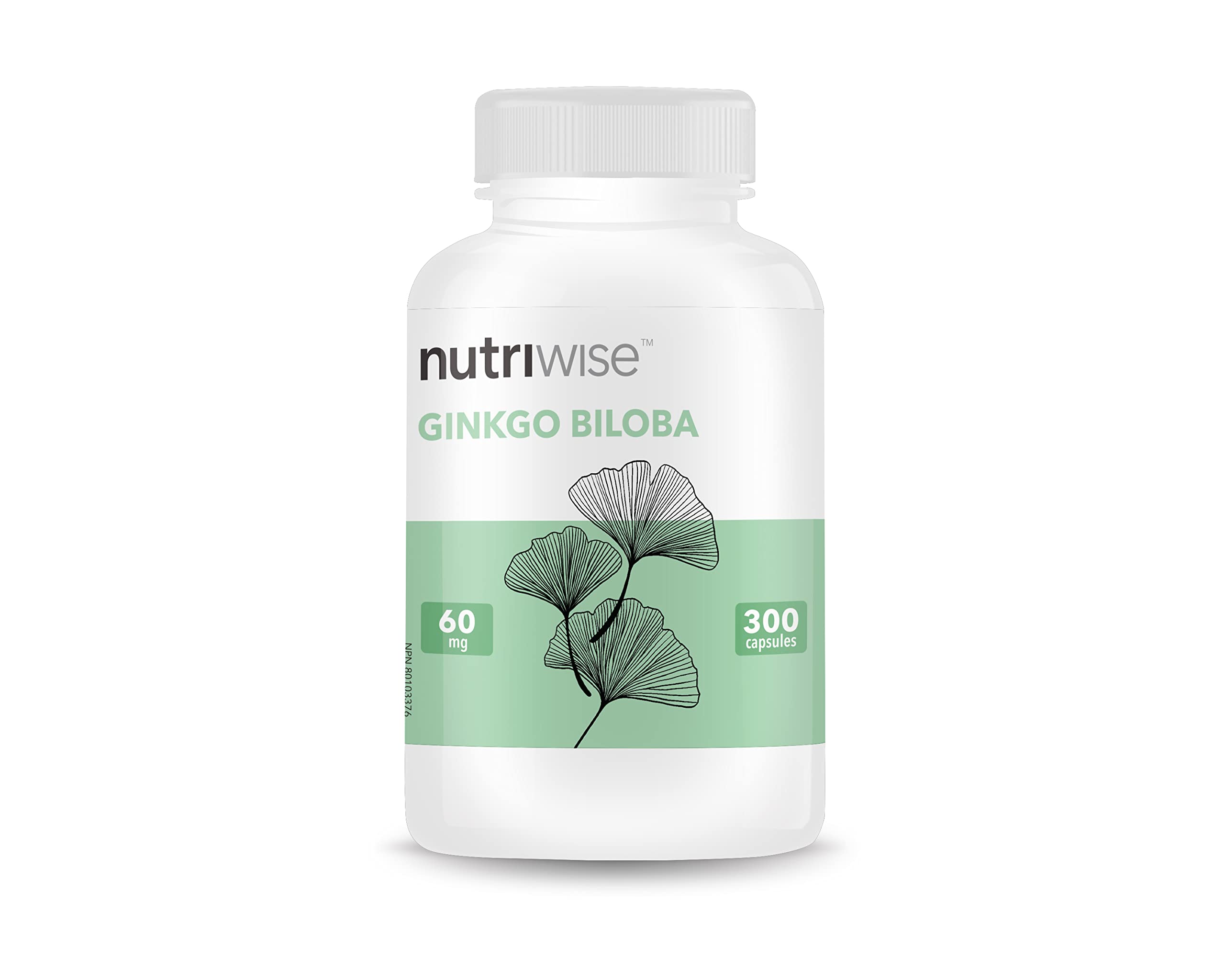Nutriwise Ginkgo Biloba 60mg with 50:1 Extract Ratio (3000mg Raw Extract) 300 Capsules