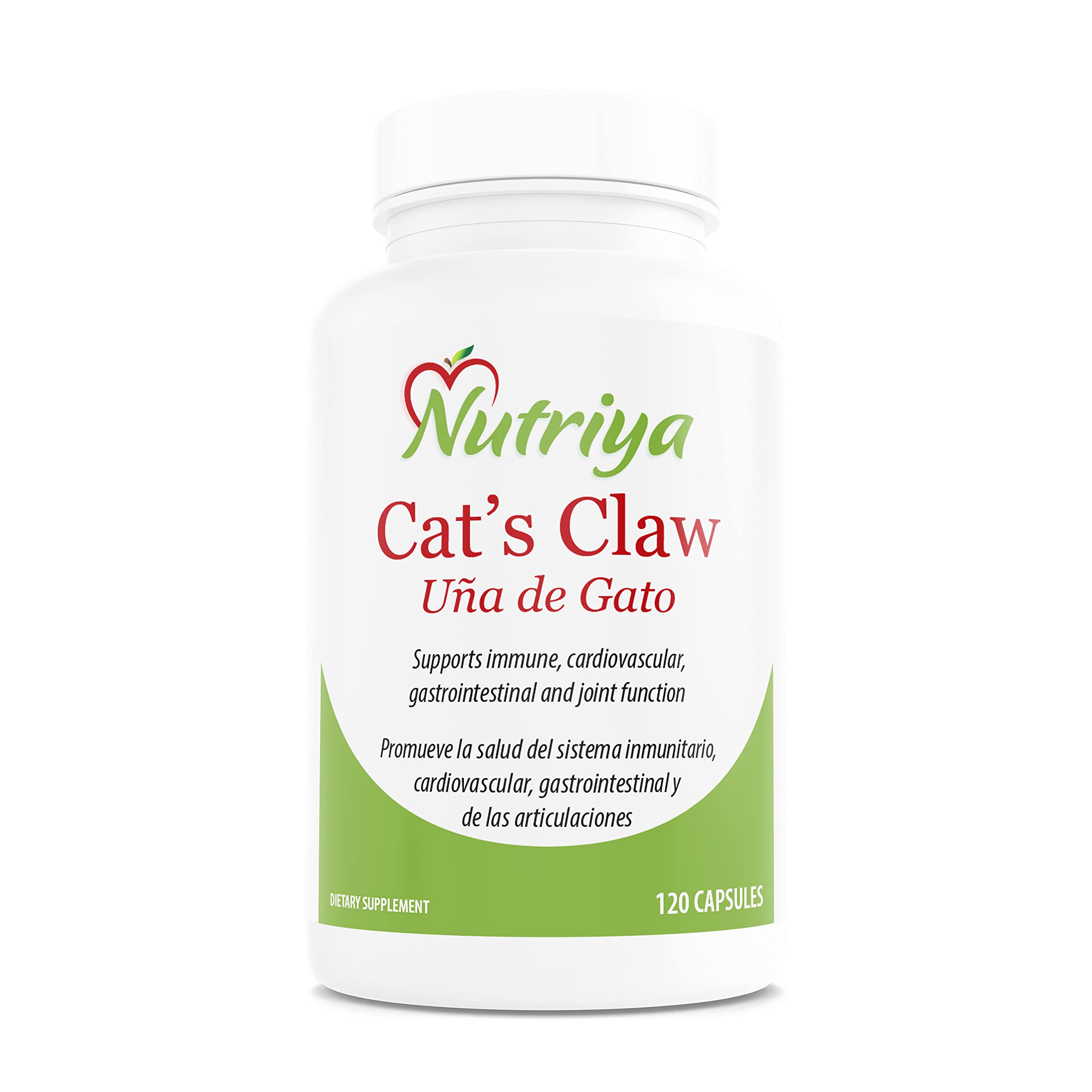 120 Vegetarian Capsules. Traditional support for a healthy immune system. Powerful herbal antioxidant that supports a healthy cardiovascular system. Cat's Claw, also known as Uncaria tomentosa and Uña De Gato in spanish, is a woody vine that grows wild in the rainforest and other tropical areas of Central and South America. The name Cat's Claw comes from the shape of its thorns that look like a cat's claw. Nutriya Cat's Claw Provides 1,500 mg of high quality Cat's Claw bark per serving in daily quick-release capsules.