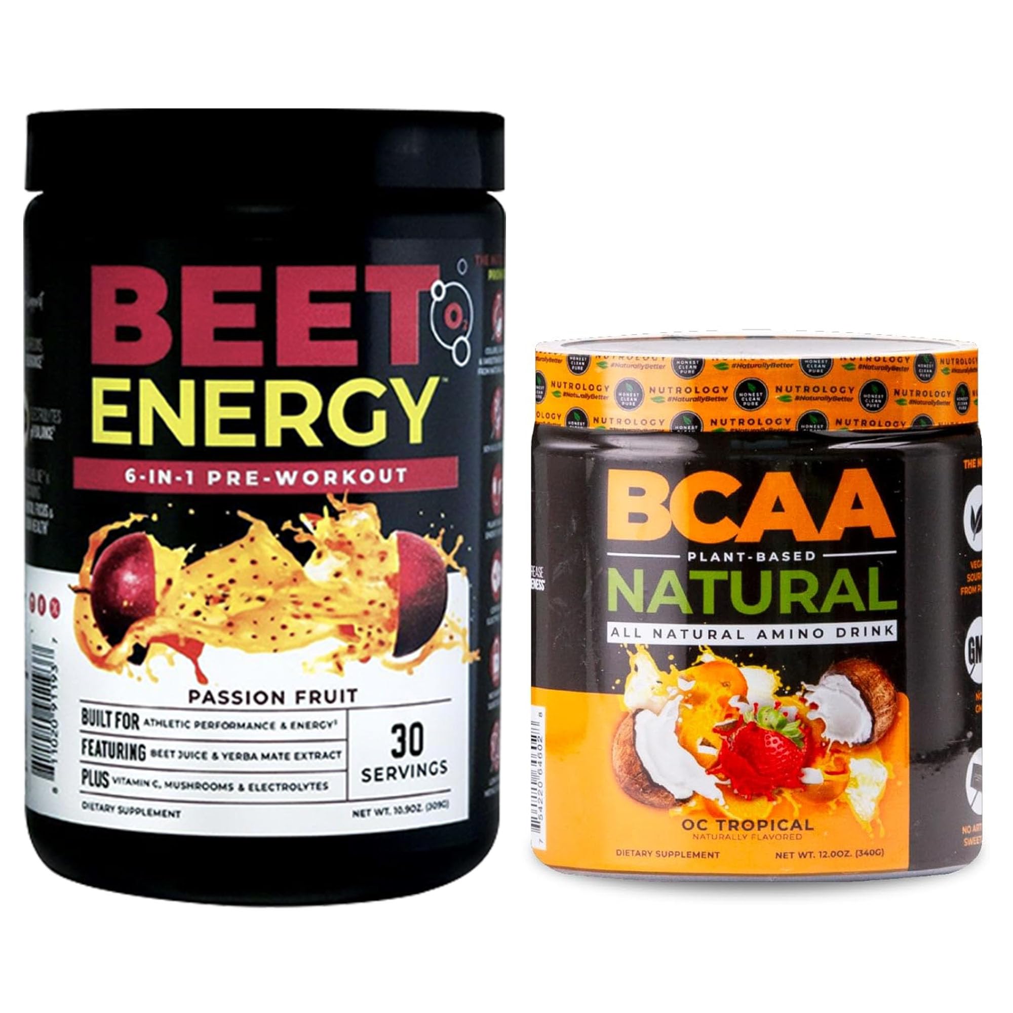Nutrology Beet Natural O2 Pre Workout Powder Passion Fruit Flavor (30 Servings) BCAA Natural Plant Based BCAA Powder Orange Coconut Flavor (30 Servings)