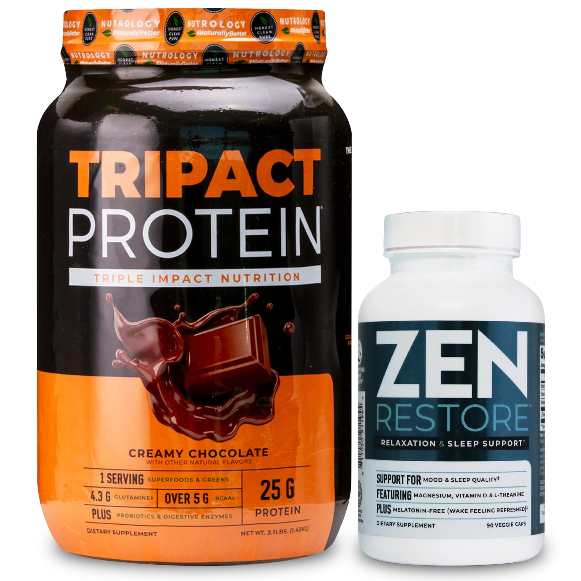 Nutrology TRIPACT Protein Powder 7-in-1 Meal Replacement Shake Creamy Chocolate (40 Servings) Zen Natural Magnesium Supplement (30 Servings)