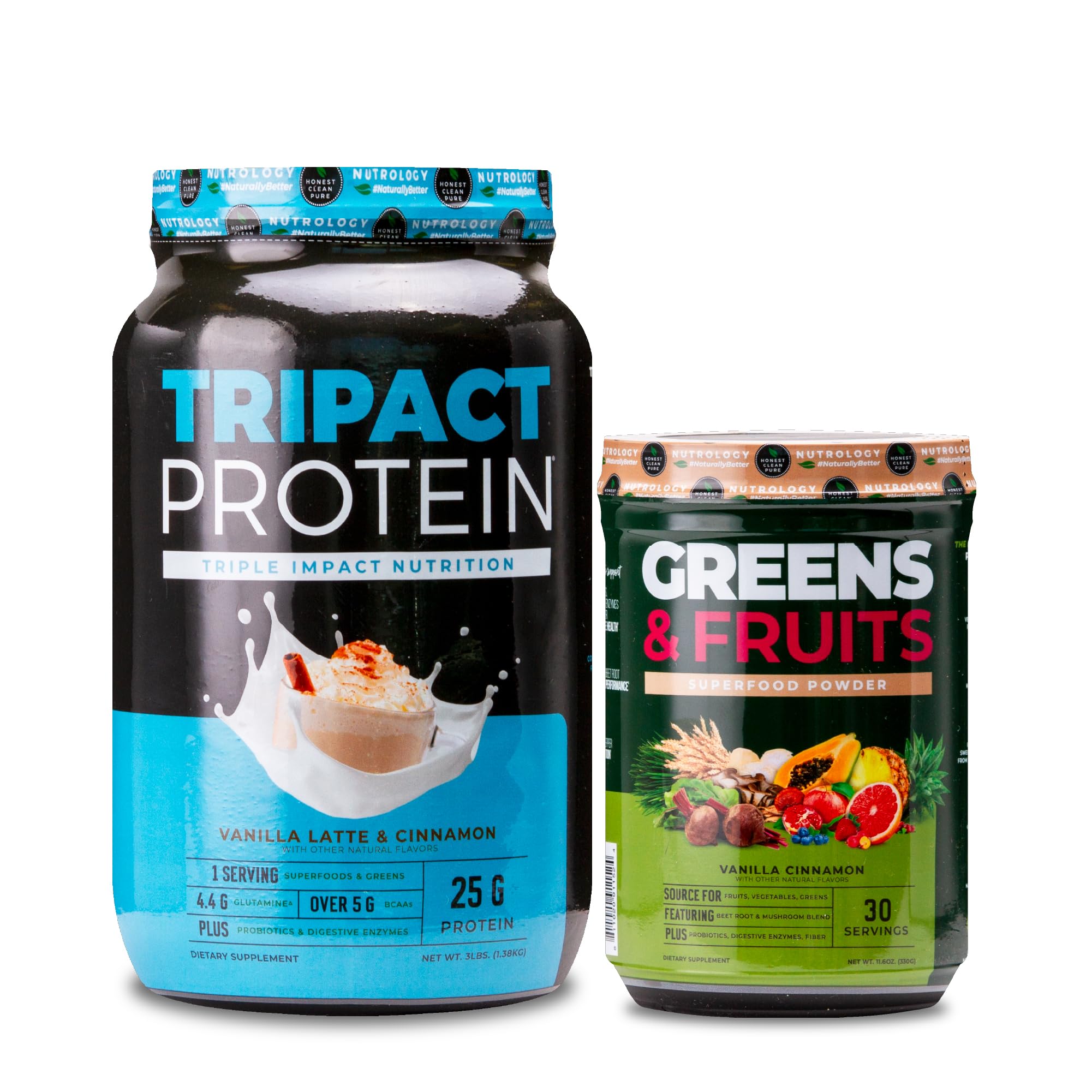 Nutrology TRIPACT Protein Powder 7-in-1 Meal Replacement Shake Vanilla Latte Cinnamon (40 Servings) & Greens & Fruits Powder-Naturally Sourced Superfood Vanilla Cinnamon (30 Servings)