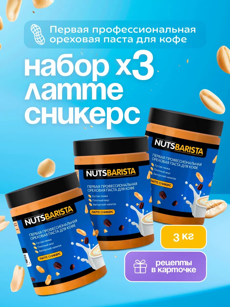 Первая профессиональная арахисовая паста для кофе "Латте сникерс" Nuts Barista с 8-ми летним опытом в ореховом производстве. Создавайте невероятное кофе, какао, милкшейки и холодное кофе с бабл-ти или тапиокой как в кофейне, но только дома! Также используйте как добавку к любымым завтракам, фруктам, сендвичам.