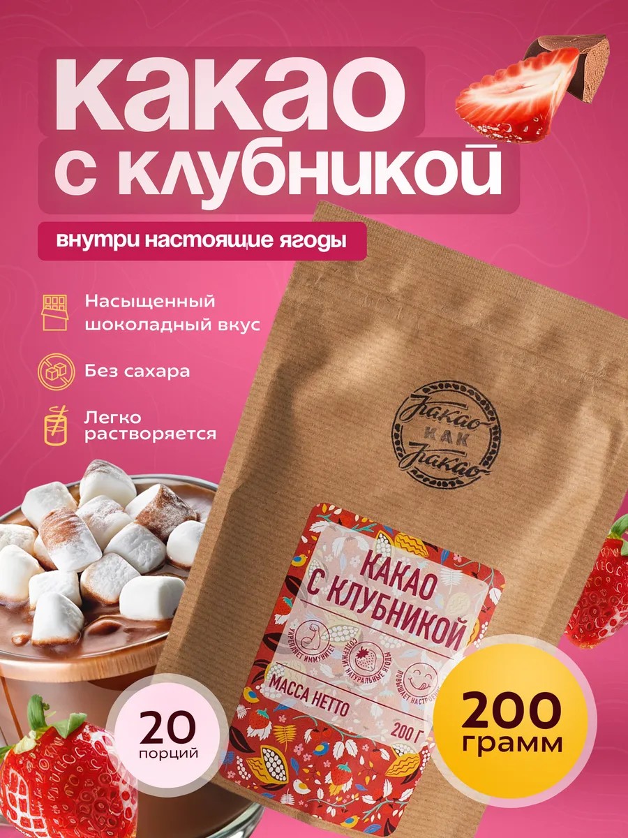 Какао порошок алкализованный натуральный с клубникой 200 г