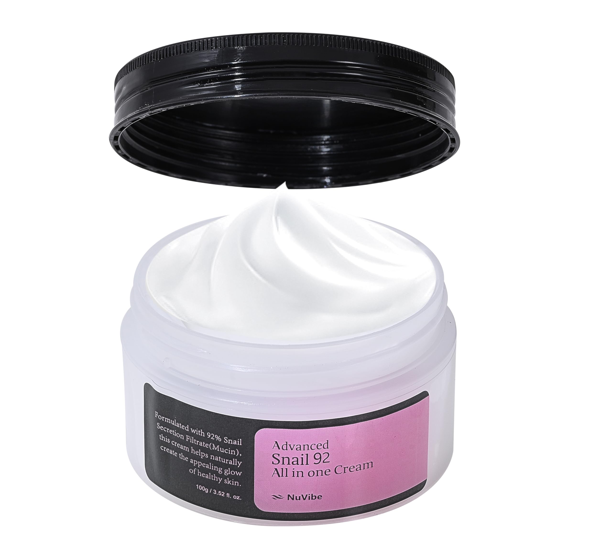 NuVibe Snail Mucin 92Moisturizeris crafted with92 pure snail mucinto deliver intense hydration and skin barrier support. This rich yet lightweight formulalocks in moisture, soothes irritation, and promotes skin repair. Free from parabens, sulfates, and artificial fragrances, it providesclean, effective nourishmentfor all skin types. Whether you're dealing withdryness, dullness, or sensitivity, this moisturizer leaves your skinsmooth, plump, and refreshed.
