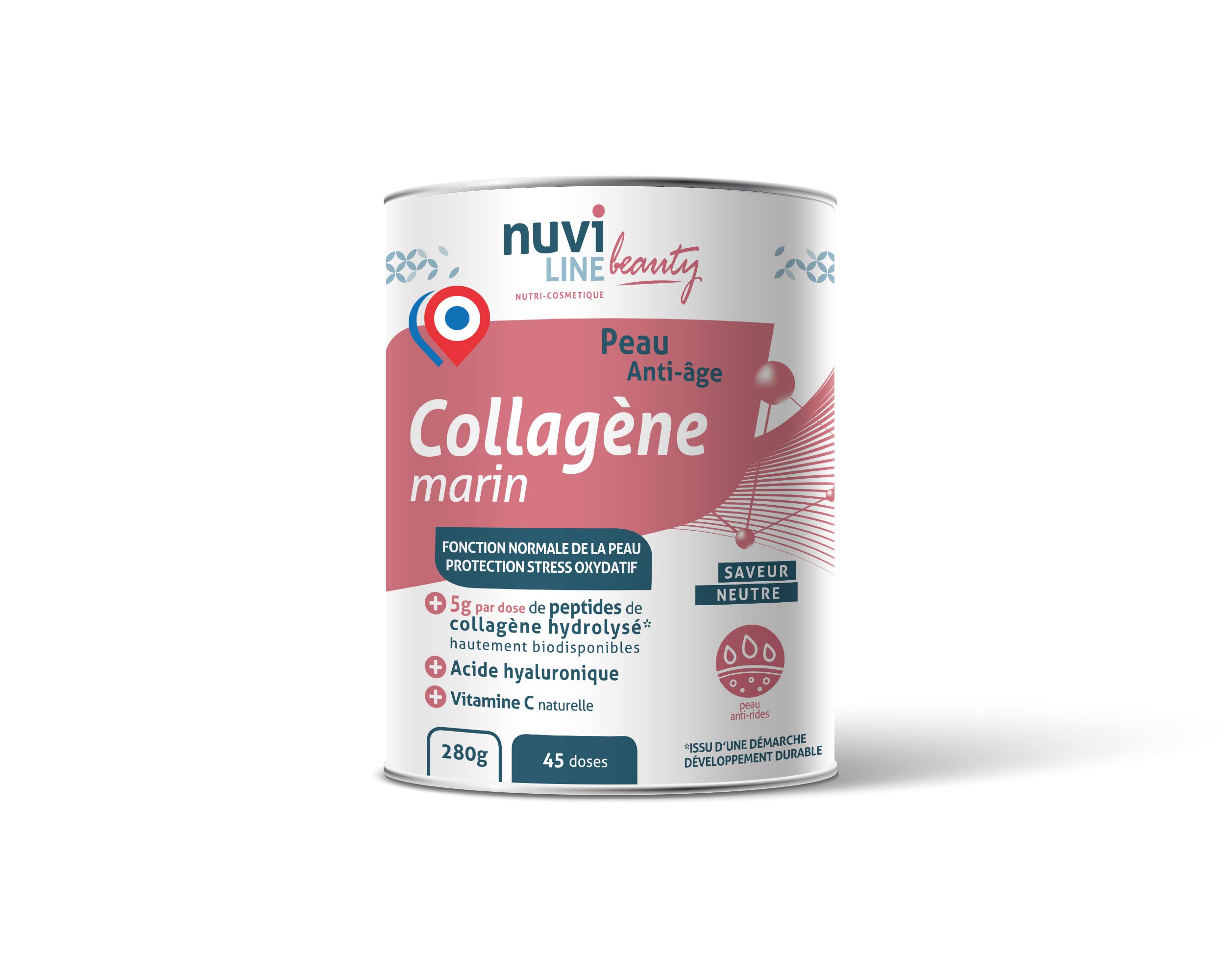 NUVILINE, NUTRITION FOR LIFE: Choose the expertise of Nuviline, your best ally in powdered marine collagen for a balanced diet that supports your overall health and strengthens your immunity. LOCAL RESPONSIBLE PRODUCTION: Nuviline collagen is manufactured in France in a sustainable development approach according to rigorous manufacturing standards to offer you premium quality products that respect the environment. YOUR DAILY COLLAGEN TREATMENT: Intended for 45 doses, or 5g dose, at breakfast or before dinner, Nuviline marine collagen can be easily added to water, a smoothie, yogurt or even your favorite recipe. PROTECTS REPAIRS THE SKIN: The combination of hyaluronic acid and vitamin C in this hydrolyzed collagen helps delay cellular aging and protects cells from oxidative stress, all lactose-free and sugar-free. NATURAL BODY SUPPORT: Anti-Aging Marine Collagen provides natural proteins that help regenerate tissue, particularly in the skin, and hydrate while reducing wrinkles.NUVILINE, LA NUTRITION POUR LA VIE : Choisissez l'expertise de Nuviline, votre meilleur allié en collagène marin en poudre pour une alimentation équilibrée qui soutient votre santé globale et renforce votre immunité. PRODUCTION LOCALE RESPONSABLE : Le collagène Nuviline est fabriqué en France dans une démarche de développement durable selon des normes de fabrication rigoureuses pour vous proposer des produits de qualité premium respectueux de l'environnement. VOTRE CURE QUOTIDIENNE DE COLLAGENE : Prévu pour 45 doses, soit 5g dose, au petit-déjeuner ou avant le dîner, le collagène marin Nuviline s'ajoute facilement à de l'eau, un smoothie, un yaourt ou encore à votre recette préférée. PROTÈGE RÉPARE LA PEAU : L'association de l'acide hyaluronique et de la vitamine C dans ce collagène hydrolysé participe au retardement du vieillissement cellulaire et protège les cellules du stress oxydatif, tout ça sans lactose et sans sucre. SOUTIEN NATUREL POUR L'ORGANISME : Le collagène marin Anti-Âge apporte des protéines naturelles qui contribuent à régénérer les tissus, particulièrement au niveau de la peau, et hydratent tout en réduisant les rides.