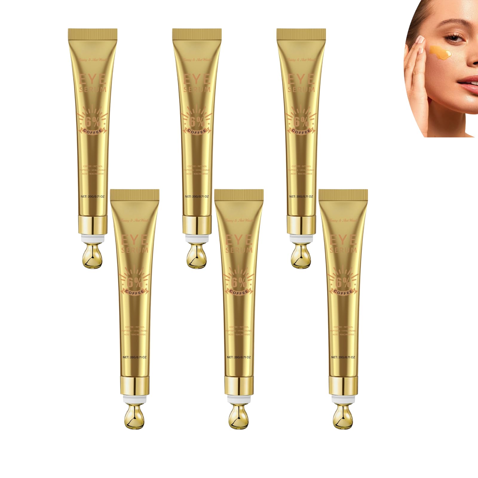Discover the secret to brighter eyes with Instant Firmx Eye Cream. Enriched with 6 caffeine, retinol, and hyaluronic acid, this advanced eye cream reduces dark circles, relieves puffiness, and minimizes under-eye bags for clearer, firmer skin. The formula works as both a caffeine eye cream and a retinol eye cream, helping to smooth fine lines, reduce wrinkles, and improve elasticity. Its brightening technology also acts as an under-eye brightener and serum, revitalizing tired eyes. With its lightweight texture and easy-to-use applicator, it absorbs quickly without leaving a greasy residue, making it ideal as an eye cream for puffiness and bags under the eyes, as well as a gentle eye cream and dark circle corrector. Designed as an instant firmer, it visibly reduces under-eye bags while providing long-lasting hydration. This eye cream is suitable for men and women of all skin types and offers all-in-one care. Use it in the morning to refresh and brighten, or in the evening for deep conditioning. Instant Firmx eye cream integrates perfectly into your routine and helps you maintain a youthful, confident, and refreshed look every day. Specifications: Name: Eye Serum Package Contents: 1 2 4 6 eye serum bottles Note: 1. Please allow 1-2 cm error due to manual measurement. 2. Due to lighting effects during photography and different monitor settings, the product colors in the image may differ slightly from the actual product color. Thank you for your understanding. SAFETY WARNING For external use only. Avoid contact with eyes. If irritation or a rash develops, discontinue use immediately and consult a doctor. Keep out of reach of children. Store in a cool, dry place away from direct sunlight. Do not use on broken or irritated skin. If swallowed, seek immediate medical attention.For all skin types, men and women—Ideal for daily skincare or as a post-night rescue, this retinol eye cream also acts as an instant eye tightener and firmer that men and women trust when seeking a refreshed look. Massage design and fast absorption: The smooth applicator makes application easy, with a lightweight texture that absorbs quickly. Perfect as an eye serum for dark circles and puffiness, a caffeine eye serum, and an eye puffiness reducer for all-day comfort. Multi-effect brightening and correction: As a powerful under-eye brightener and corrector, this eye cream reduces wrinkles, fine lines, and dullness, making it a must-have under your dark circle cream. Dark circles and under-eye bags: This caffeine eye cream has been specially formulated for dark circles and under-eye bags and effectively combats puffiness and under-eye bags, helping to firm the delicate skin around your eyes. Instant Firmx Eye Anti-Aging Brightening Formula: Instant Firmx Eye Cream combines 6 caffeine eye cream with retinol to quickly brighten the eye area, reduce dark circles and puffiness, and leave your eyes looking fresh and energized.Instant Firmx Lot de 6 crèmes contour des yeux à la caféine à 6 contre les cernes et les gonflements, rétinol et acide hyaluronique sous les yeux, soin anti-âge pour rides et ridules 6 pièces.DESCRIPTION DU PRODUIT DESCRIPTION DU PRODUIT Découvrez le secret des yeux brillants avec Instant Firmx Eye Cream. Enrichie en 6 de caféine, de rétinol et d'acide hyaluronique, cette crème avancée pour les yeux réduit les cernes, soulage les poches et minimise les poches sous les yeux pour une peau plus claire et plus ferme. La formule agit à la fois comme crème contour des yeux à la caféine et comme crème contour des yeux au rétinol, aidant à lisser les ridules, à réduire les rides et à améliorer l'élasticité. Sa technologie éclaircissante agit également comme un éclaircissant et un sérum sous les yeux et redonne de la vitalité aux yeux fatigués. Avec sa texture légère et son applicateur simple, elle pénètre rapidement sans graisser et est donc idéale comme crème pour les yeux en cas de gonflements et de poches sous les yeux, ainsi que comme crème douce pour les yeux et comme correcteur de cerne. Conçu comme un raffermissant instantané, il réduit visiblement les poches sous les yeux tout en hydratant durablement. Cette crème contour des yeux convient aux hommes et aux femmes de tous types de peau et offre un soin tout-en-un. Le matin pour rafraîchir et éclaircir ou le soir pour un soin en profondeur. La crème contour des yeux Instant Firmx s'intègre parfaitement à votre routine et vous aide à garder un look jeune, confiant et rafraîchissant chaque jour. Spécifications: Nom : sérum pour les yeux Contenu du colis : 1 2 4 6 boîtes de sérum pour les yeux. Remarque : 1. Les mesures étant prises à la main, les tailles indiquées peuvent varier de 1 à 2 cm. 2. En raison des effets de l'éclairage pendant la prise de vue et des différents réglages de l'écran, les couleurs du produit sur l'image peuvent différer légèrement de la couleur du produit livré. Merci de votre compréhension. AVERTISSEMENT DE SÉCURITÉ Pour un usage externe uniquement. Évitez tout contact avec les yeux. En cas d'irritation ou d'éruption cutanée, cesser immédiatement l'utilisation et consulter un médecin. Tenir hors de portée des enfants. Conserver dans un endroit frais et sec, à l'abri de la lumière directe du soleil. Ne pas utiliser sur une peau blessée ou irritée. En cas d'ingestion, consultez immédiatement un médecin.Pour tous les types de peau, hommes et femmes ----Idéal pour les soins quotidiens de la peau ou le sauvetage après la nuit, cette crème contour des yeux au rétinol agit également comme un raffermissant instantané des yeux et un raffermissement des yeux auquel les hommes et les femmes font confiance à la recherche d'un look rafraîchissant. Design de massage et absorption rapide : l'applicateur lisse rend l'application facile, avec une texture légère qui pénètre rapidement. Parfait comme sérum pour les yeux pour les cernes et les gonflements, sér