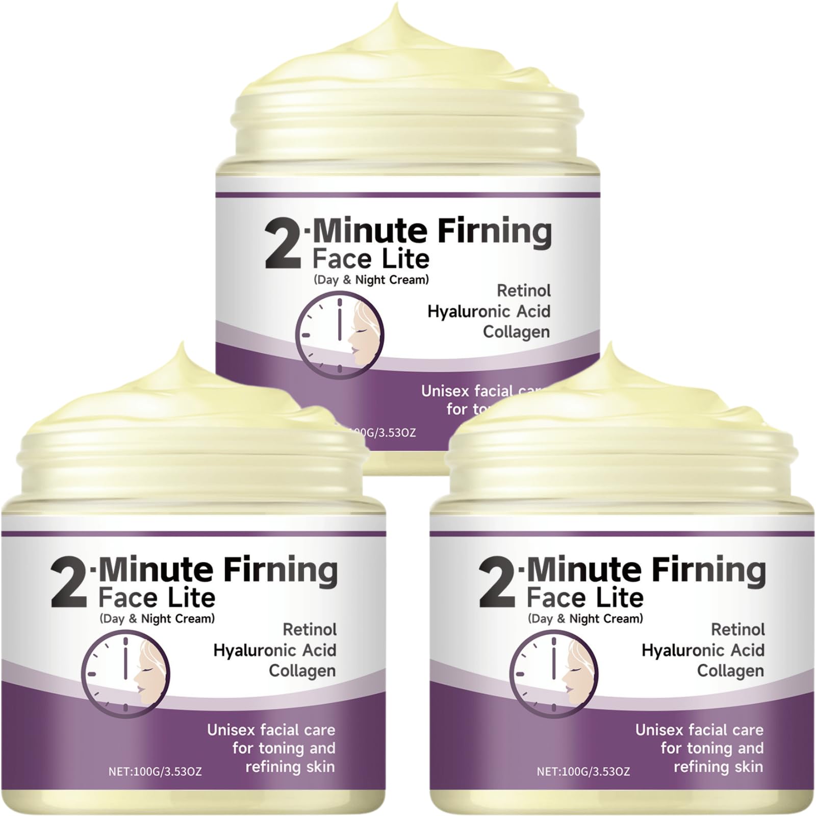 Collagen face cream with retinol hyaluronic acid, light and moisturizing, ideal for balanced hydration, smooth skin, and a clear, healthy complexion. Specifications: Name: Collagen Face Cream 100g Package Contents: 1 2 3 boxes of Collagen Face Cream 100g Note: 1. Please allow 1-2cm error due to manual measurement. 2. Due to lighting effects during photography and different monitor settings, the color of the product in the image may differ slightly from the color of the delivered product. Thank you for your understanding. SAFETY WARNING noGentle formula for daily skincare, suitable for dry, oily, combination, and sensitive skin. Apply an appropriate amount to clean, dry skin and massage gently until fully absorbed. Suitable for morning and evening use. The smooth cream texture absorbs quickly into the skin, leaving the face feeling hydrated, comfortable, and refreshed. Helps balance oil and moisture levels for a fresh, healthy complexion without a greasy or heavy finish. Formulated with collagen to help hydrate the skin and maintain a soft, smooth, and comfortable feel with daily use.Lot de 3 crèmes pour le visage au collagène avec rétinol et acide hyaluronique, crème hydratante quotidienne légère pour une hydratation équilibrée, une sensation de peau lisse et un teint sain 3 pièces.DESCRIPTION DU PRODUIT DESCRIPTION DU PRODUIT Crème pour le visage au collagène avec rétinol hyalurons auml urine, léger et auml m ouml crème hydratante possible f uuml r hydratation équilibrée, peau lisse uuml teint net et sain. Spécifications: Nom : crème pour le visage au collagène 100 g Contenu du colis : 1 2 3 boîtes de crème pour le visage au collagène 100 g. Remarque : 1. Les mesures étant prises à la main, les tailles indiquées peuvent varier de 1 à 2 cm. 2. En raison des effets de l'éclairage pendant la prise de vue et des différents réglages de l'écran, les couleurs du produit sur l'image peuvent différer légèrement de la couleur du produit livré. Merci pour votre compréhension. AVERTISSEMENT DE SÉCURITÉ nonFormule douce pour les soins quotidiens de la peau, convient aux peaux sèches, grasses, mixtes et sensibles. Appliquer une quantité appropriée sur une peau propre et sèche et masser doucement jusqu'à absorption complète. Convient pour une utilisation matin et soir. La texture crème lisse pénètre rapidement dans la peau et laisse le visage hydraté, agréable et rafraîchissant. Aide à équilibrer les niveaux d'huile et d'hydratation pour un teint frais et sain sans finition grasse ou lourde. Formulé avec du collagène pour aider à hydrater la peau et maintenir une sensation douce, lisse et agréable sur la peau lors de l'utilisation quotidienne.
