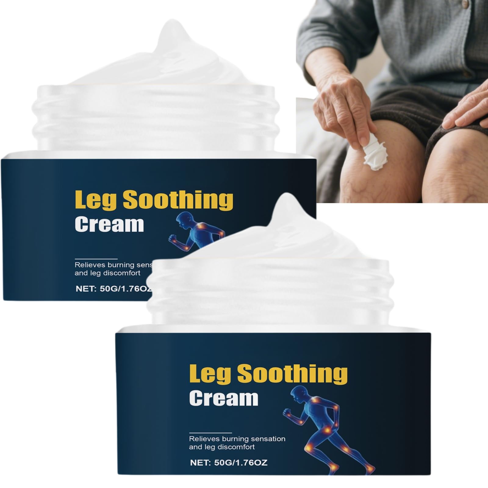 This soothing leg cream helps relieve burning, tightness, and discomfort, leaving your legs feeling refreshed and relaxed. The cooling gel-cream texture absorbs quickly, providing immediate comfort after walking, standing, or exercising. Ideal for runners, travelers, and anyone with an active lifestyle. The moisturizing and skin-friendly formula softens and hydrates legs, promoting everyday leg comfort. Package contains: 1 2 4 6 tins Soothing Leg Cream NOTE: 1. Please allow 1-2 cm differences due to manual measurement. 2. Due to different displays and lighting, the image may not reflect the actual color of the item. Thank you for your understanding. SAFETY WARNING For external use only. Avoid contact with eyes. If irritation occurs, discontinue use. Keep out of reach of children.Easy to apply anytime: absorbs quickly without sticking. If needed, massage a small amount onto your legs for refreshing comfort and relaxation. Moisture-wicking and skin-friendly formula: enriched with moisture-wicking ingredients to soften and nourish the skin while providing a gentle and moisture-wicking leg care experience. Supports the comfort of tired legs: ideal for runners, hikers, travelers, and anyone who suffers from leg fatigue. Helps your legs feel easier and more comfortable after daily activities. Cooling and refreshing effect: the light gel-cream texture provides immediate cooling, leaving your legs feeling more relaxed, refreshed, and comfortable. Soothes burning sensations: a gentle and soothing leg cream that relieves burning, tightness, and general discomfort after long days or prolonged activity.Crème apaisante pour les jambes, sensation de brûlure, jambes lourdes et fatiguées, crème relaxante et gel rafraîchissant pour l'inconfort, soins quotidiens hydratants pour un confort frais. (2pcs)DESCRIPTION DU PRODUIT DESCRIPTION DU PRODUIT Cette crème apaisante pour les jambes aide à soulager la sensation de brûlure, de tiraillement et d'inconfort, afin que vos jambes se rafraîchissent et se détendent. uuml hlen. La texture de la crème gel rafraîchissante absorbe rapidement et offre aux jambes un confort immédiat après la marche, la position debout ou l'entraînement. Idéal pour les coureurs, les voyageurs et tous ceux qui ont un style de vie actif. La formule feuchtigkeitsspendende et douce pour la peau adoucit les jambes et les hydrate tout en favorisant le confort quotidien des jambes. Le paquet contient : 1 2 4 6 boîtes Crème apaisante pour les jambes REMARQUE : 1. veuillez accepter des différences de 1 à 2 cm dues aux mesures manuelles. 2. en raison de l'affichage et de la lumière différents, l'image peut ne pas montrer la couleur réelle de l'article. Merci de votre compréhension. AVERTISSEMENT DE SÉCURITÉ Usage externe uniquement. Évitez le contact avec les yeux. En cas d'irritation, arrêtez l'utilisation. Tenir hors de portée des enfants.Facile à appliquer à tout moment : s'insère rapidement sans coller. Si nécessaire, massez une petite quantité sur les jambes pour obtenir un confort et une relaxation rafraîchissants. FormuleFeuchtigkeitsspendende et respectueuse de la peau : enrichie d'ingrédients feuchtigkeitsspendenden pour adoucir et nourrir la peau tout en offrant une expérience de soin des jambes douce et feuchtigkeitsspendendes . Soutient le confort des jambes fatiguées : idéal pour les coureurs, les randonneurs, les voyageurs et tous ceux qui souffrent de fatigue des jambes. Aide vos jambes à se sentir plus faciles et plus confortables après les activités quotidiennes. Effet rafraîchissant et rafraîchissant : la texture légère de la crème gel procure un refroidissement immédiat, donnant à vos jambes une sensation plus détendue, rafraîchissante et confortable. Apaise la sensation de brûlure : une crème douce et apaisante pour les jambes qui soulage la sensation de brûlure, de tiraillement et d'inconfort général après de longues journées ou une activité plus longue.