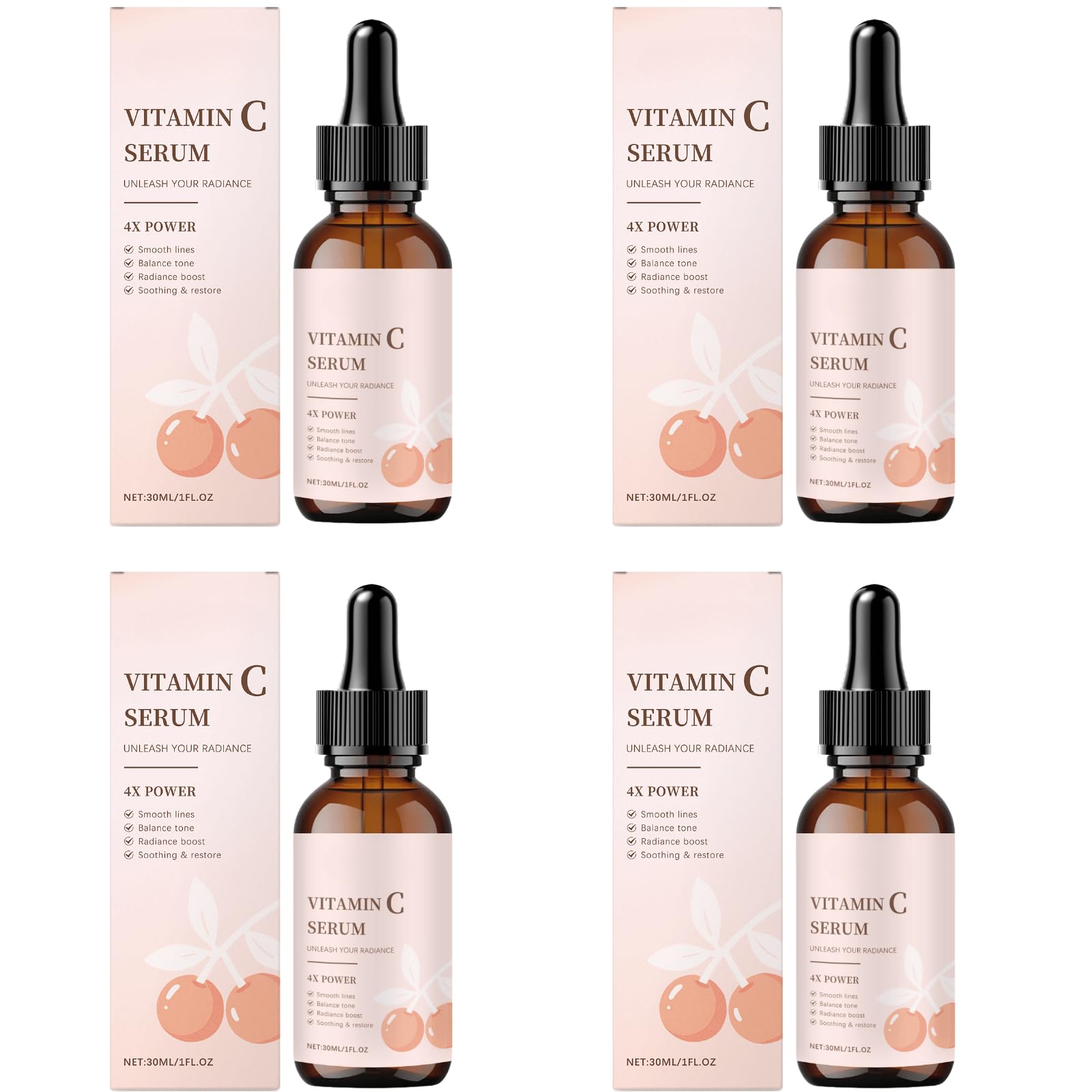 Sérum pour le visage à la vitamine C à l'acide hyaluronique - Soin hydratant pour une peau lisse, éclatante et équilibrée (4 pièces) 4 pièces.