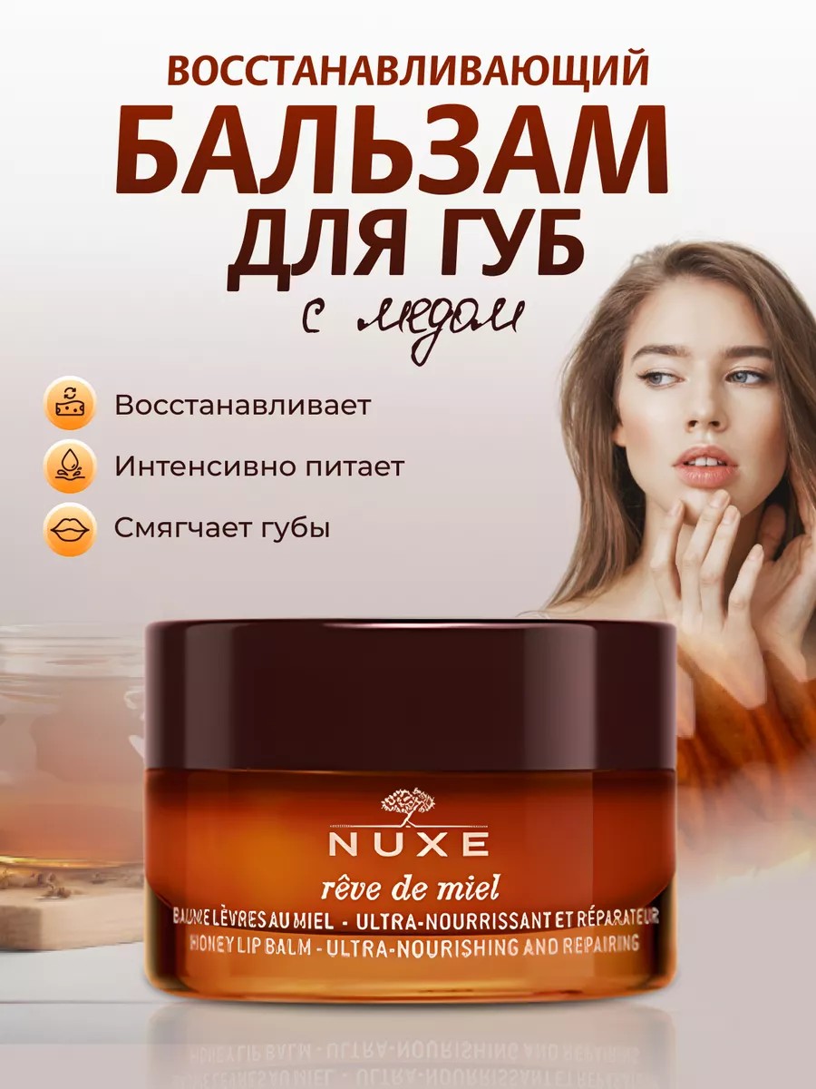Питательный бальзам для губ от Нюкс из серии Рев де Мьель (Nuxe Reve de Miel) предназначен для восстановления и питания сухих и потрескавшихся губ, идеально соответствует потребностям нежной, тонкой кожи губ и его можно применять в любое время года. Активные компоненты: Мёд акации 5% Масло карите 13% Драгоценные растительные масла (чилийская роза, масляный экстракт календулы. сладкий миндаль) 12,5% Витамин Е 1% Эссенция грейпфрута 2,5% Способ применения: Использовать ежедневно зимой и летом.