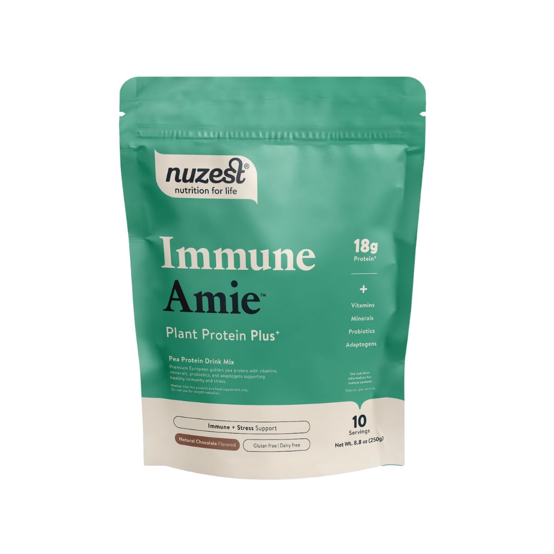 Nuzest Protein Plus | Immune Amie | Chocolate | Supports Healthy Immune System | Stress Support Benefits | Vitamins and Minerals | Lion's Main, Maitake & Shitake Mushrooms | 8.8oz/ 250g (10 Servings)