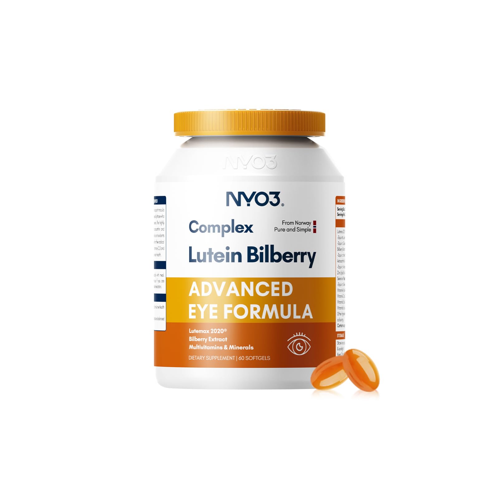 NYO3 Eye Vitamins with Lutein and Zeaxanthin Patented Eye Formula Recommended by NIH Advanced Bilberry & Astaxanthin Vitamins A C E B12 & Minerals Eye Health & Vision Protection 60 Softgels