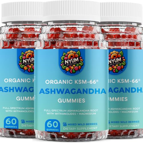3- 60 Count Bottle: 3 bottles contain 180 gummies for a 3-month supply. Convenient Gummies: Easy-to-consume gummy format, perfect for on-the-go lifestyles. Mixed Wild Berries Flavor: Delicious mixed wild berries flavor for an enjoyable gummy experience. Organic KSM-66: Made with certified organic KSM-66 Ashwagandha, a highly bioavailable and potent root extract. Full-Spectrum Ashwagandha: These gummies contain the full spectrum of beneficial compounds from the Ashwagandha root, including withanolides and magnesium.