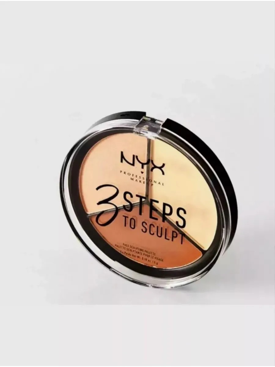 The NYX 3 Steps to Sculpt Contouring Palette (No. 02) is a versatile tool for creating perfectly proportioned faces in three easy steps. The compact includes a matte contouring powder, a bronzer for adding warmth, and a highlighter to accentuate the high points of the face. Shade 02 is ideal for medium to dark skin tones. The silky texture applies easily, blends smoothly, and doesn't accentuate pores or fine lines. The formula is enriched with vitamin E to nourish skin throughout the day. It lasts up to 8 hours without creasing or oxidizing. Its compact size and large mirror make it ideal for home and travel use. Suitable for both professional and everyday makeup.