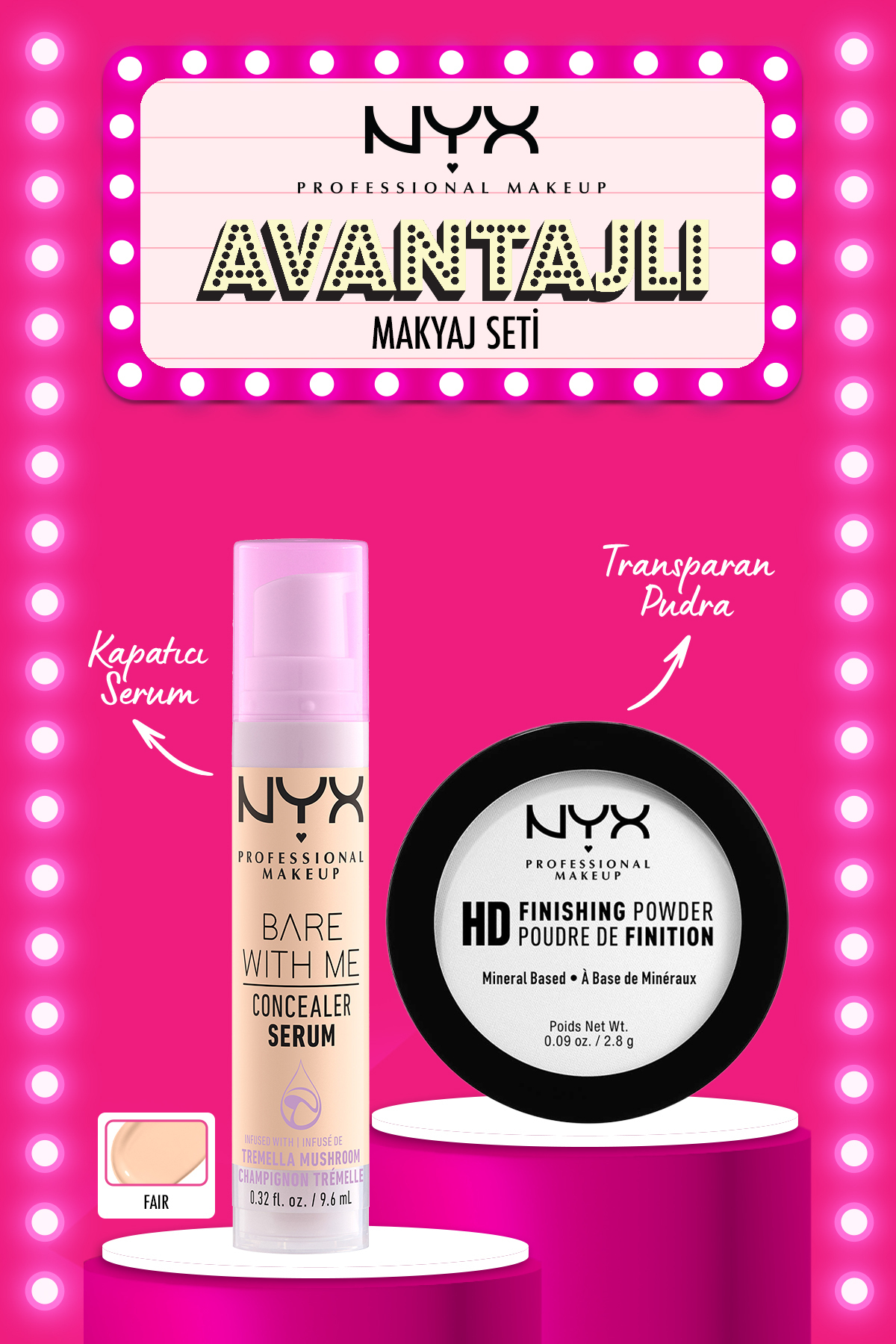 NYX Professional Makeup Bare With Me Concealer Serum 01 Fair & Mini Powder Set