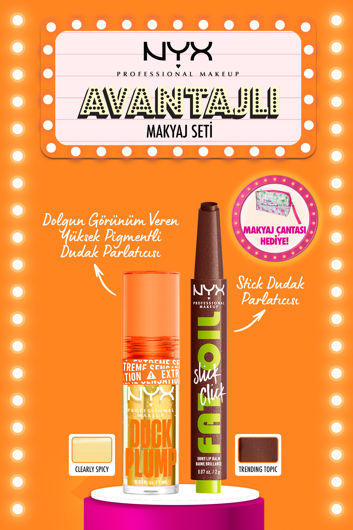 NYX Professional Makeup Duck Plump Lip Gloss 01 Clearly Spicy & Fat Oil Shine Lip Balm 12- Gift Bag