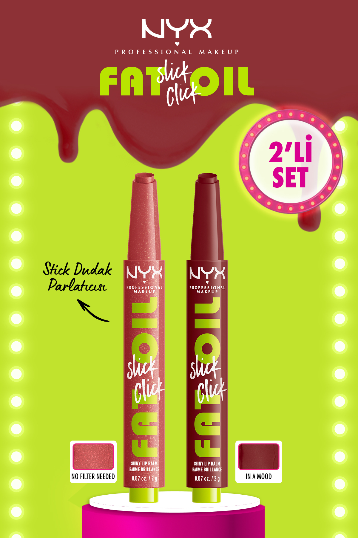 NYX Professional Makeup Fat Oil Slick Click Shine Lip Balm - 03 No Filter Needed & 11 In A Mood