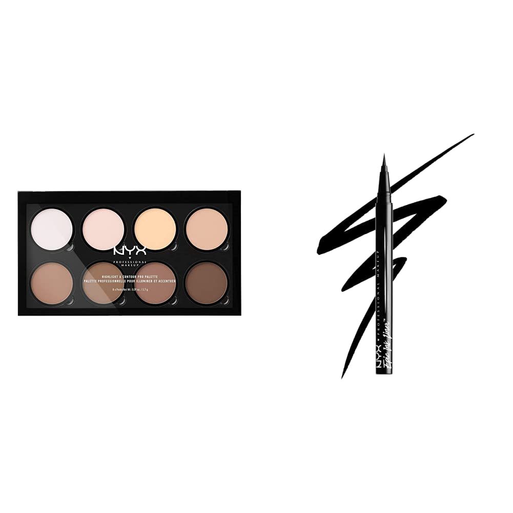 NYX Professional Makeup Highlight Contour Pro Palette, Powder Contours Kit, 8 Fallable Matt and Perlms tones The makeup palette with blends color tones is a 3 -in -1 foundation, concealer and highlighter and ideal for highlighting your best features - eight colors enable simple contouring for a natural look, mix the colors for your individual contours - wear thisCreamy powder with a clean brush on the desired places, for a long stop we recommend using a foundation - the Cream powder is easy to blend and adapts to your natural skin tone, the compact design is ideal for on the go - scope of delivery: 1x NYX ProfessionalMakeup Highlight Contour Pro Palette, weight: 2.7 grams (per pan) NYX Professional Makeup Epic Ink Eye Liner, Filz Abbey, Waterproof, Vegan Formula, Shade 01 High -pigmented, waterproof and liquid eyeliner for precise eyeliner strings and different looks - for professionals and beginners - black color for a variety of use for all eye colors, highly pigmented and long -lasting effect - thin and flexible brush tip, individual determination of the thickness of your eyeliner by varying the pressure, for fineAnd natural or wide and exciting eyelid strings - simple application, vegan formula - scope of delivery: 1 x NYX Professional makeup epic ink liner, shade 1product 2: versatile for all eye colors, strong color and long -lasting effect.Product 2: High pigmented, waterproof eyeliner with a narrow, flexible brush, ideal for defined eyelets and different looks, perfect for beginners.Product 1: creamy-soft powder for simple blends, adapts to your natural skin tone, compact and ideal for on the go.Product 1: Simply apply the desired areas with a clean brush, use for long hold with foundation.Product 1: Eight colors for highlighting and pulling contours for a natural look, mix the colors for individual contours.Product 1: Makeup palette with blindly color tones for perfect highlights and flattering contours, ideal for highlighting your best features.NYX Professional Makeup Highlight Contour Pro Palette, Puder Konturen Kit, 8 verblendbare Matte und Perlmutttöne Die Makeup Palette mit verblendbaren Farbtönen ist eine 3-in-1 Foundation, Concealer und Highlighter und ideal zum Hervorheben Ihrer besten Merkmale - Acht Farbtöne ermöglichen einfaches Konturing für einen natürlichen Look, Mischen Sie die Farben nach belieben für Ihre individuellen Konturen - Tragen Sie das cremige Puder mit einem sauberen Pinsel auf die gewünschten Stellen auf, Für langen Halt empfehlen wir eine Foundation zu verwenden - Das Cream Puder lässt sich einfach verblenden und passt sich Ihrem natürlichen Hautton an, Das kompakte Design ist ideal für unterwegs - Lieferumfang: 1x NYX Professional Makeup Highlight Contour Pro Palette, Gewicht: 2,7 Gramm (Je Pfännchen) NYX Professional Makeup Epic Ink Eye Liner, Filzstift, Wasserfest, Vegane Formel, Shade 01 Hochpigmentierter, wasserfester und flüssiger Eyeliner für präzise Lidstriche und unterschiedliche Looks - Für Profis und Anfänger - Schwarzer Farbton zur vielseitigen Anwendung für alle Augenfarben, Hochpigmentiert und langanhaltender Effekt - Dünne und flexible Pinselspitze, Individuelle Bestimmung der Dicke Ihres Lidstrichs durch Variieren des Drucks, Für fein und natürliche oder breit und aufregende Lidstriche - Einfache Anwendung, Vegane Formel - Lieferumfang: 1 x NYX Professional Makeup Epic Ink Liner, Shade 1Produkt 2: Vielseitig anwendbar für alle Augenfarben, Kräftige Farbe und langanhaltender Effekt. Produkt 2: Hochpigmentierter, wasserfester Eyeliner mit schmalem, flexiblem Pinsel, Ideal für definierte Lidstriche und unterschiedliche Looks, Perfekt geeignet für Anfänger. Produkt 1: Cremig-weiches Puder zum einfachen Verblenden, Passt sich Ihrem natürlichen Hautton an, Kompakt und ideal für unterwegs. Produkt 1: Einfaches Auftragen auf die gewünschten Stellen mit sauberem Pinsel, Für langen Halt mit Foundation verwenden. Produkt 1: Acht Farbtöne zum Hervorheben und Konturenziehen für einen natürlichen Look, Mischen Sie die Farben für individuelle Konturen. Produkt 1: Makeup Palette mit verblendbaren Farbtönen für perfekte Highlights und schmeichelnde Konturen, Ideal zum Hervorheben Ihrer besten Merkmale.