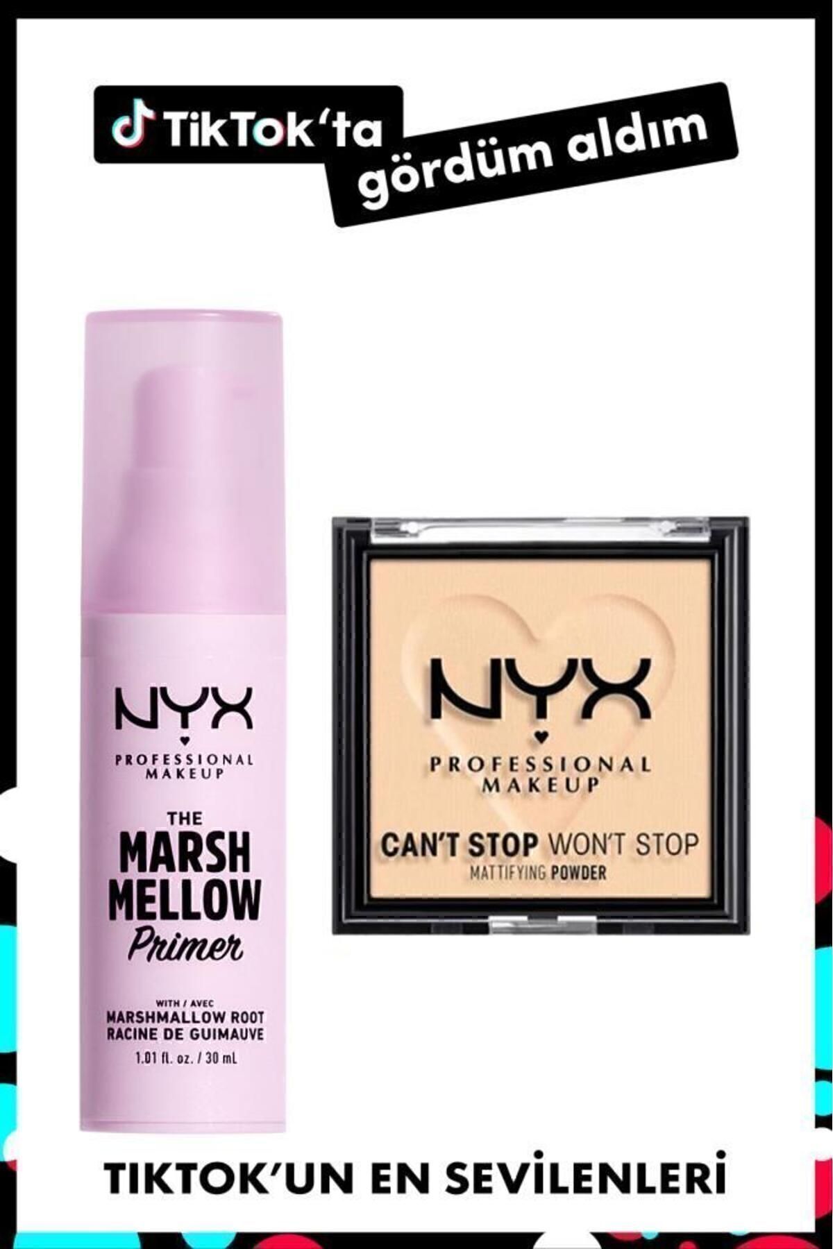 NYX Professional Makeup Marshmellow Soothing Primer Makeup Base & Can't Stop Won't Stop Mattifying Powder- Light