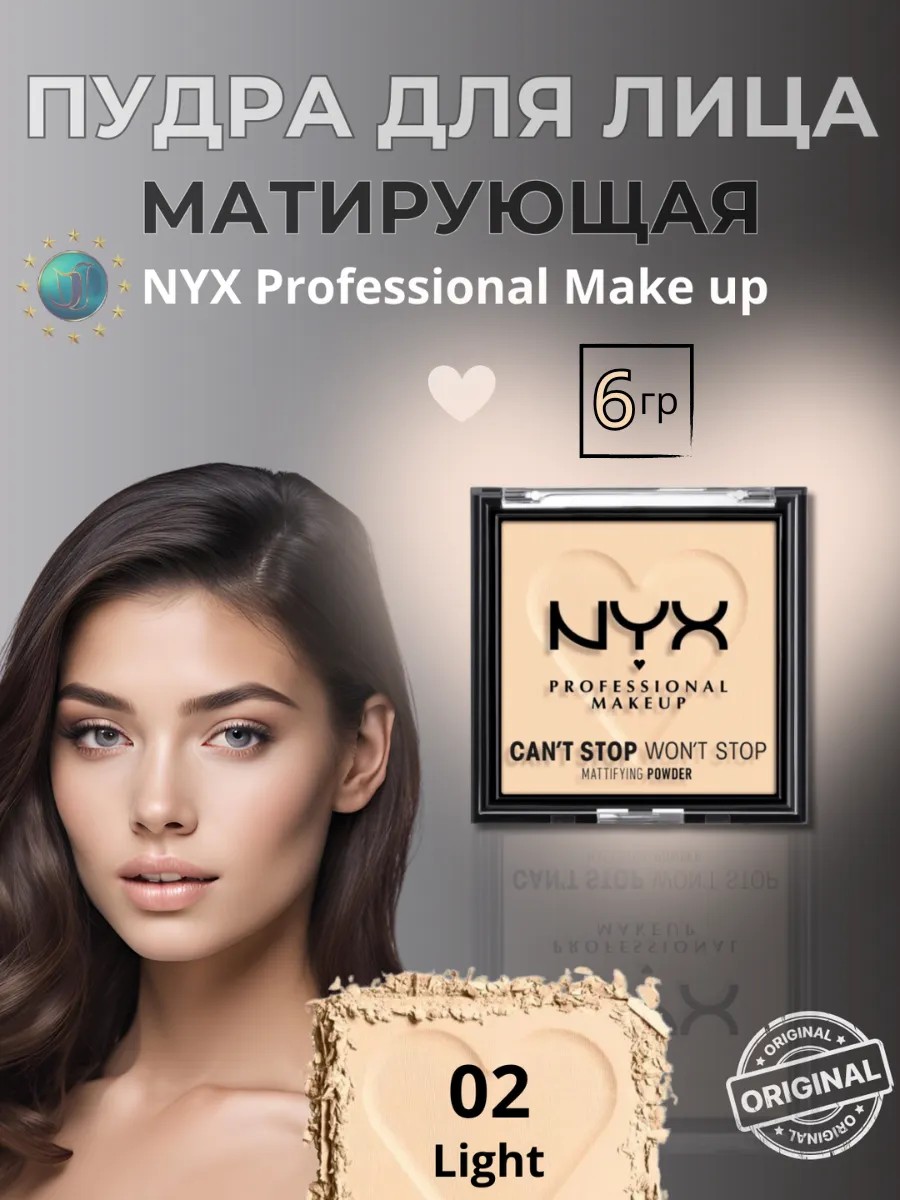 NYX PROFESSIONAL MAKEUP Матирующая пудра для макияжа Nyx Can'T Stop 02 Light