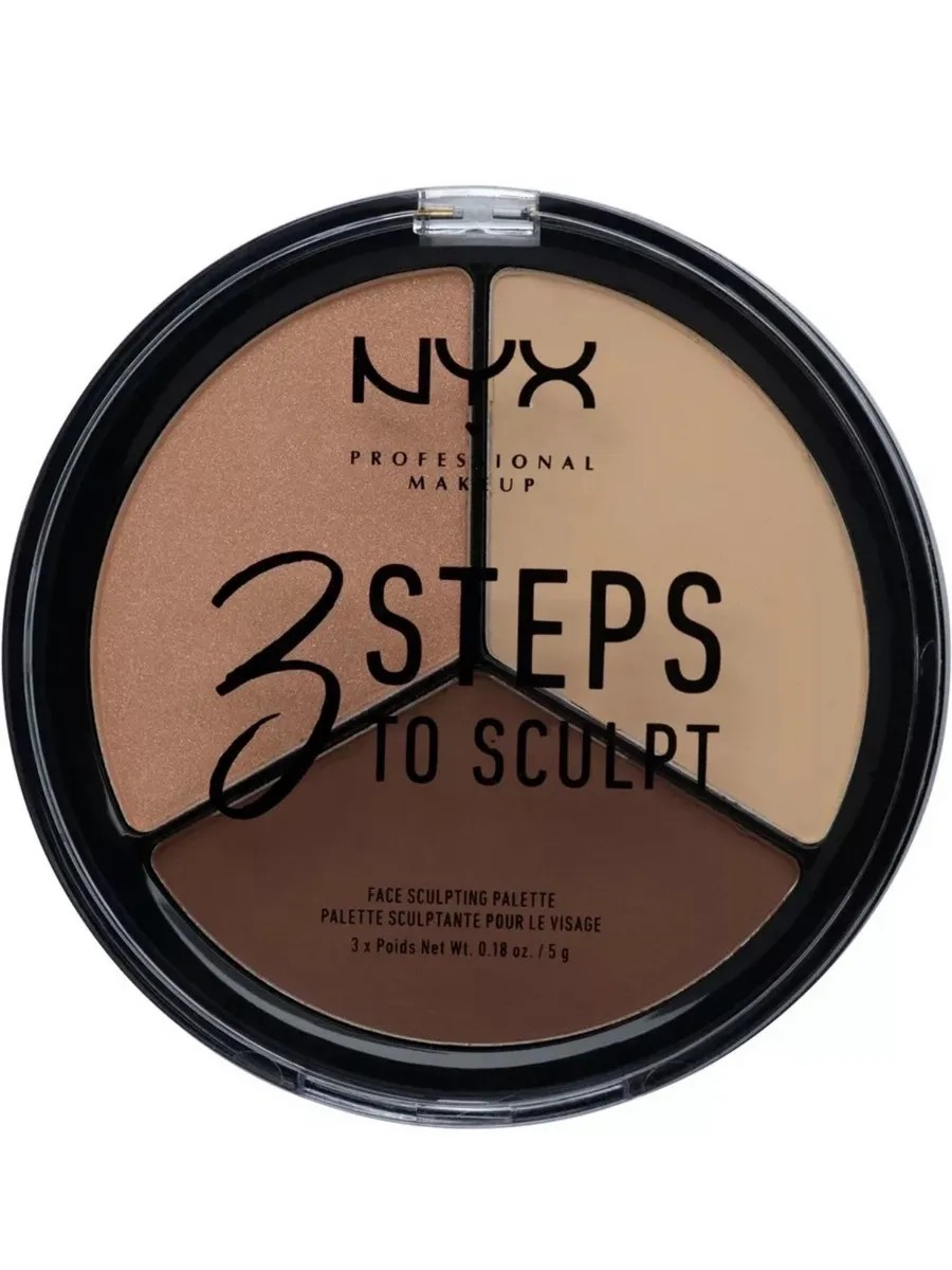 The NYX 3 Steps to Sculpt Contouring Palette (Item 02) is a large, three-color compact palette for sculpting, contouring, blush, and highlighter—the foundation for everyday makeup.