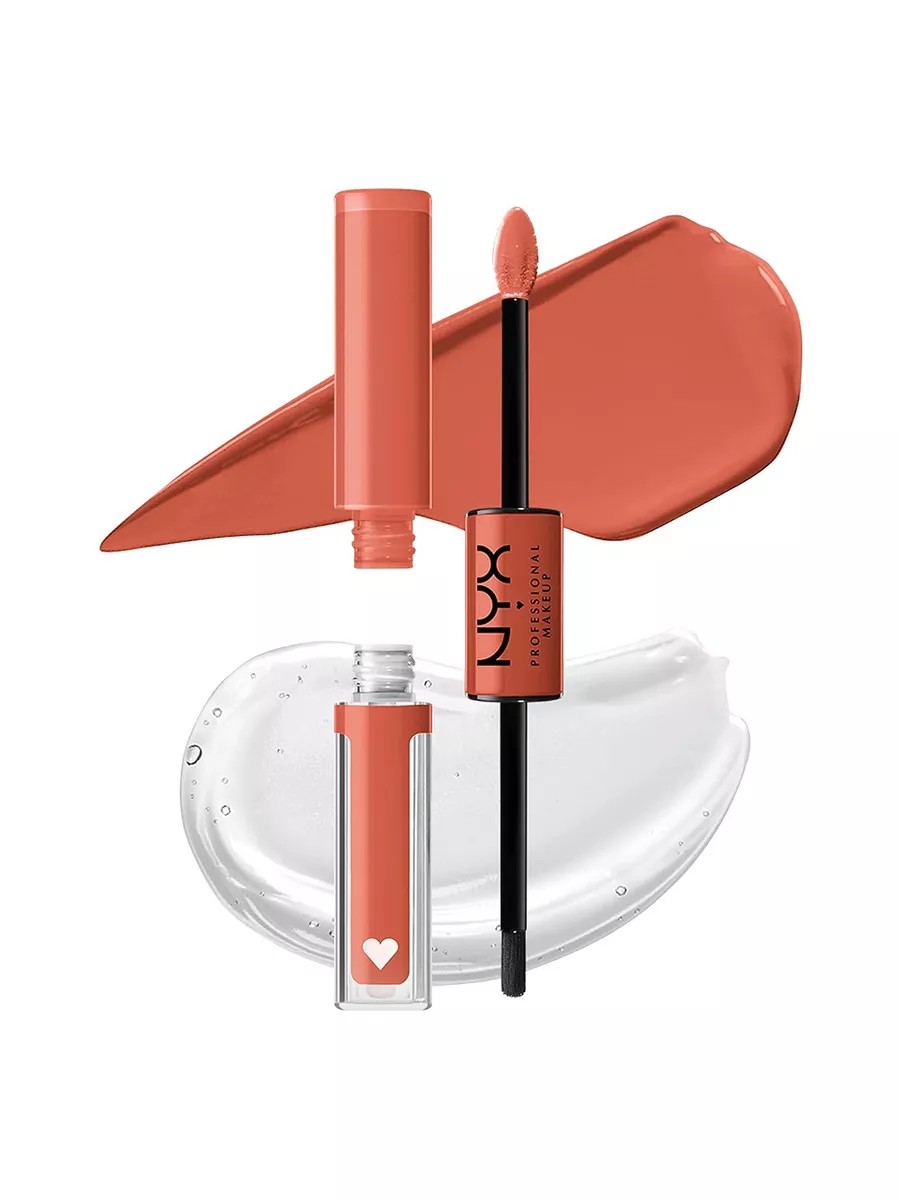 Двусторонний блеск для губ поставляется с отдельными аппликаторами для нанесения основы и верхнего слоя