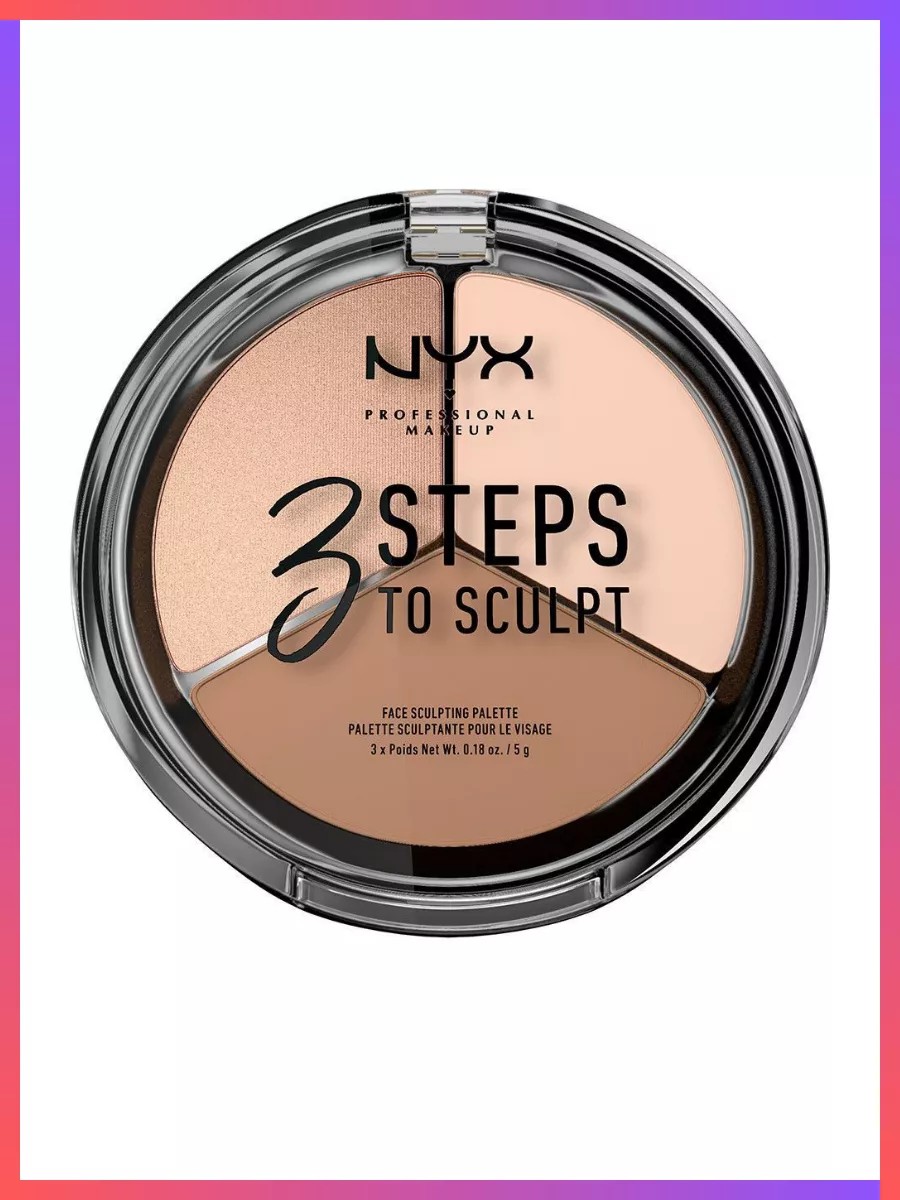 Тройная палетка для скульптурирования NYX 3 Steps To Sculpt Fair 01 Lux копия. NYX палетка с самыми необходимыми для скульптурирования продуктами: пудрой, хайлайтером, корректором. консилер для лица 01 сухую текстуру. Покрытие от среднего до плотного. консилер nyx подходит как для новичков, так и для тех, кто хорошо знаком с мейкапом. Скульптор для лица "3 в 1" от НИКС легко наносится и растушевывается. Только естественная красота без эффекта маски и лишних усилий! nyx скульптор подходит для нормальной, жирной, сухой и комбинированной кожи. В палетке - оттенки для разных типов внешности. Текстура: Плотная сухая/прессованная. Финиш: Покрытие от среднего до плотного. СПОСОБ ПРИМЕНЕНИЯ: 1. Нанесите светлый корректор nix на следующие зоны: центр лба, область под глазами на спинку носа под бровью, по центру подбородка. 2. Нанесите средство для скульптурирования на следующие зоны: на верхнюю часть лба по линии роста волос под скулы вдоль боковых сторон носа по нижней линии подбородка. 3. Нанесите на выступающие части скул и на линию верхней губы перламутровый хайлайтер.