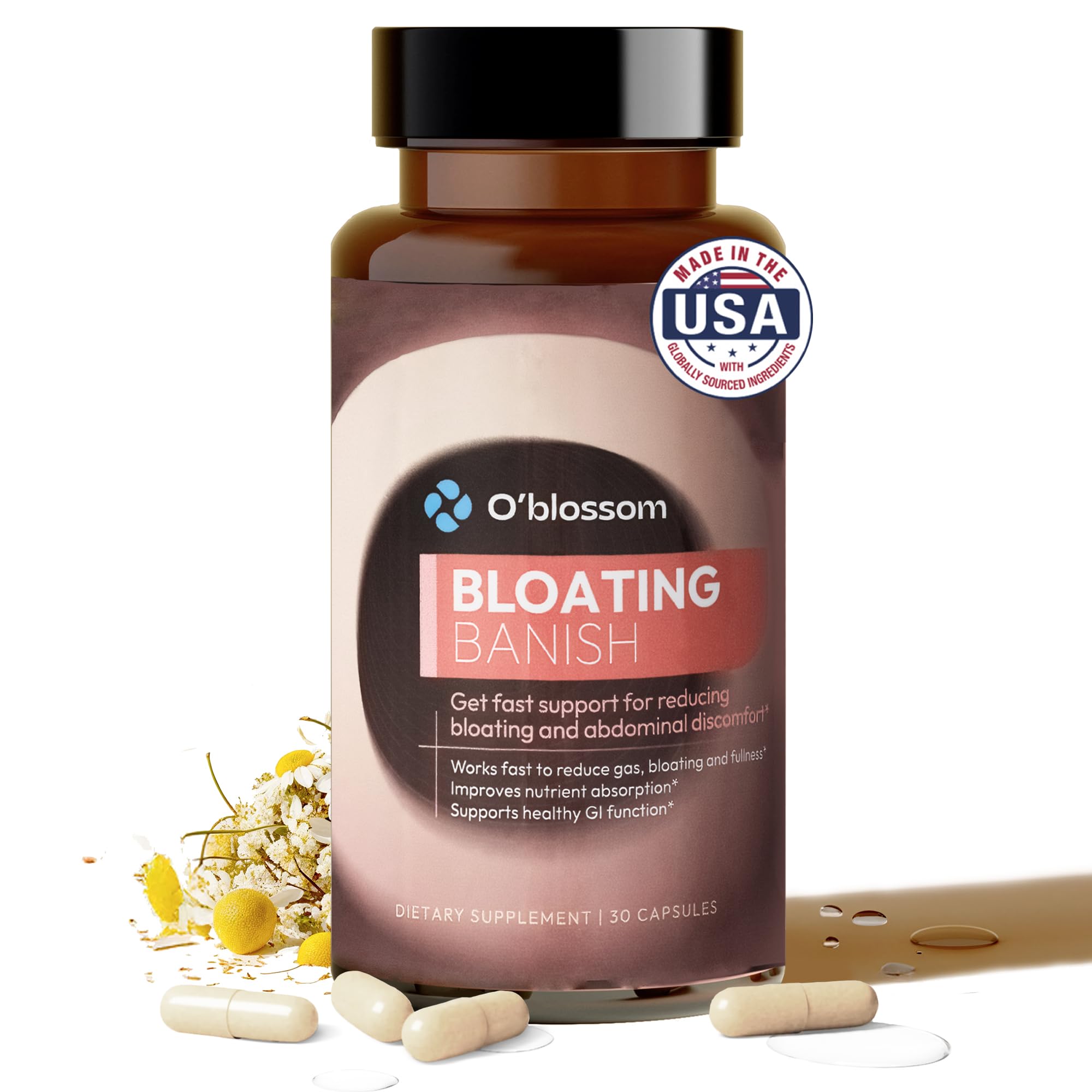 O'blossom Bloating Banish with Benegut - Gut Health for Women Patented Probiotics for Digestive Health Clinically Studied Relief in 90 Minutes Supports Gut Lining Integrity