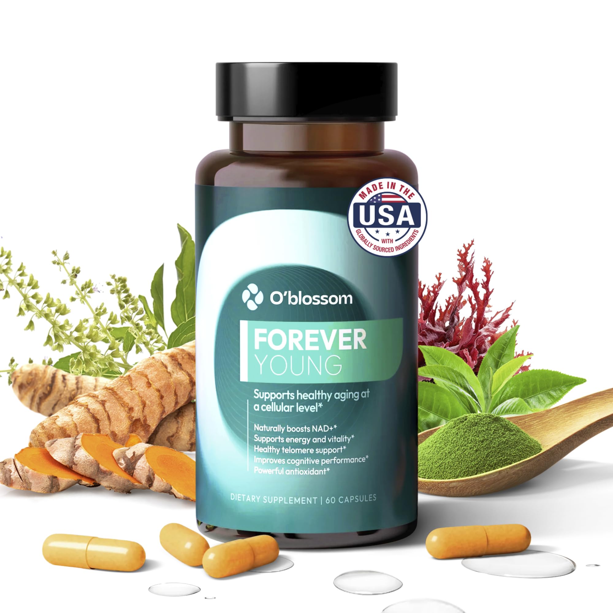 O'blossom Forever Young NAD+ Supplement - Clinically Studied NMN Resveratrol Formula with NADH Supplement - Boosts NAD+ in 14 Days Supports Healthy Aging Cognitive Function & Mitochondrial Health
