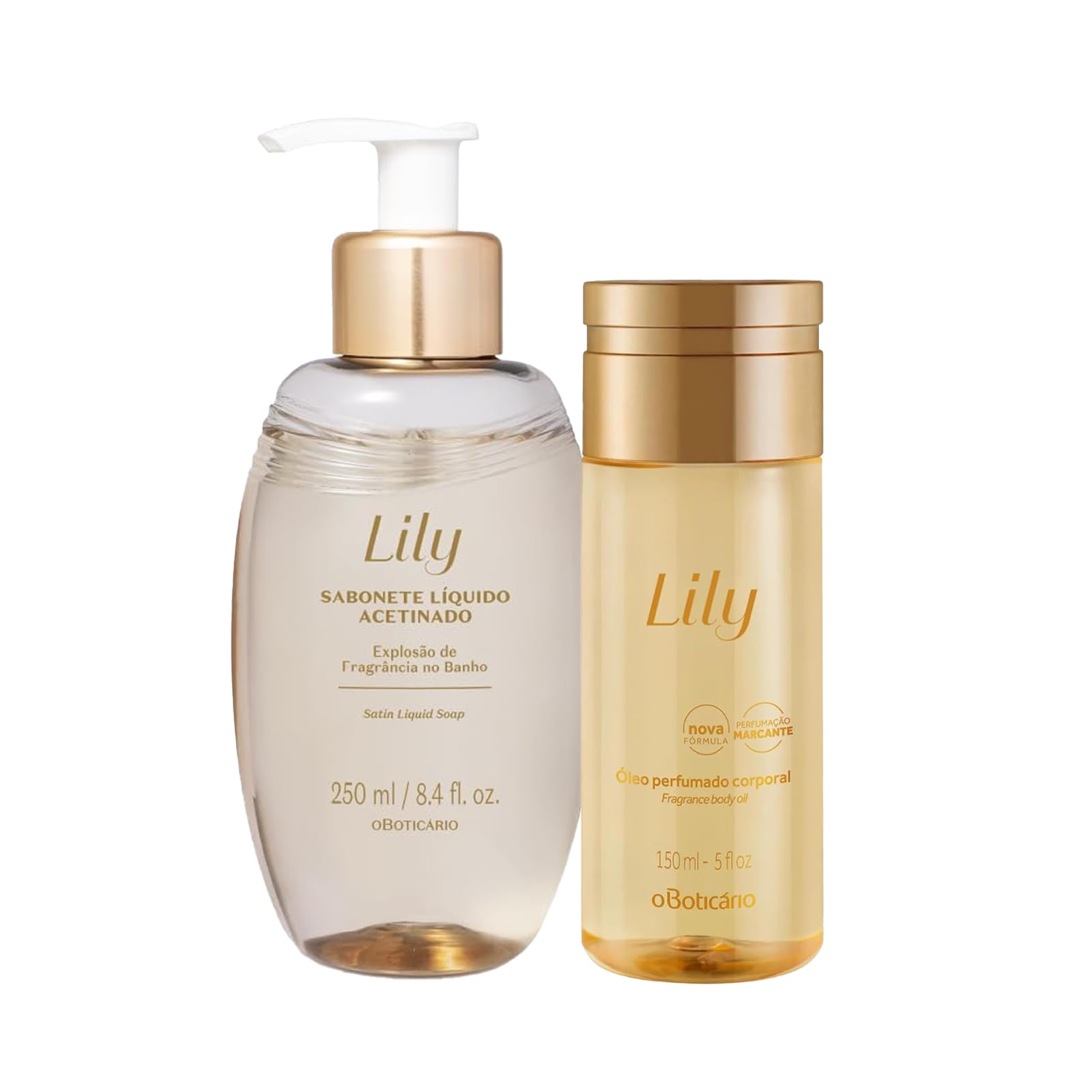 LILY BODY OIL: Envelops your skin with the captivating fragrance of Lily Eau de Parfum, Boticário's best-selling women's perfume that celebrates the soul of the Stargazer Lily. CAPTIVATING: Our moisturizing oil is eco-conscious, created by naturally cold-pressing oils which allow for the quick absorption of nourishing vitamins.. Sophisticated Shower Ritual: Lily Satin Body Wash elevates your shower routine, infusing it with sophistication and the luxurious fragrance of Boticario's Lily scent, providing a high level of the fragrance you adore. Distinctive Texture: Immerse yourself in a sensorial experience with a distinctive texture, including a creamy foam, a satin feel, and gentle cleansing without drying. Giving you a unique and pampering shower experience.