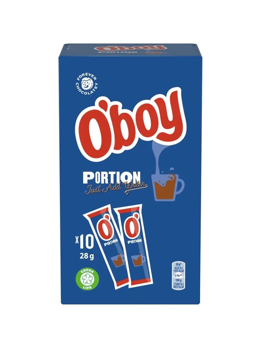 Oboy Original cocoa contains less sugar than other cocoa brands and does not contain artificial sweeteners, making it healthy even for small children. It dissolves easily even in cold water and can also be diluted with hot or cold milk. Preparation: 1 heaping stick of cocoa per 200 ml of cold or hot milk. Stir and drink. Oboy (translated from Swedish as chocolate powder) is a certified cocoa brand. Manufactured at a factory in Sweden (at the Marabou chocolate factory). Ingredients: sugar, low-fat cocoa (18%), emulsifier soy lecithin, dextrose, salt, vanillin flavoring, contains soy. The package contains 10 sticks.