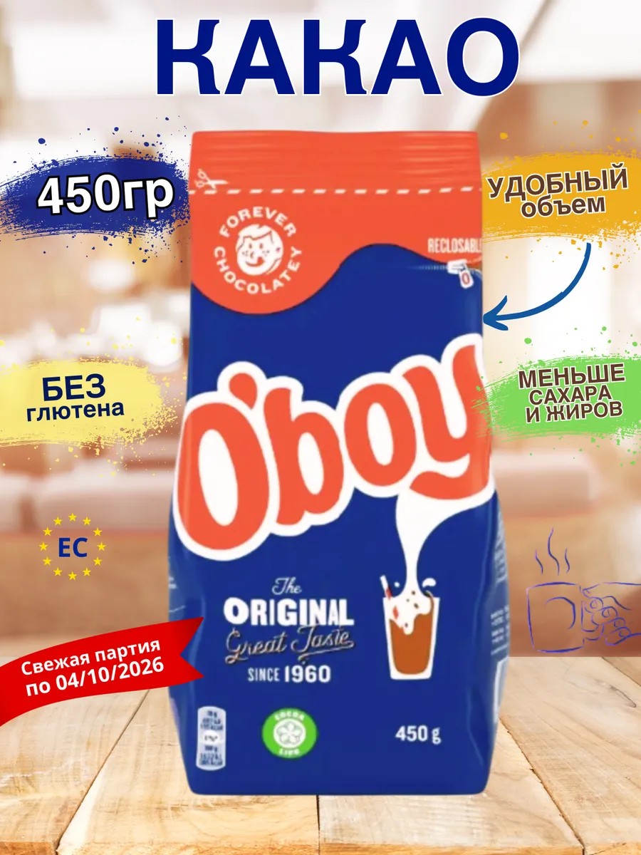 Какао растворимый O'boy Original- шведский какао любимый в Скандинавии растворимый какао, который дарит незабываемые вкусовые впечатления уже более 60 лет. O'boy в переводе со шведского – «шоколадный порошок», является сертифицированной маркой какао. Производство осуществляется на заводе Upplands Vasby в Швеции (на шоколадной фабрике Marabou).
