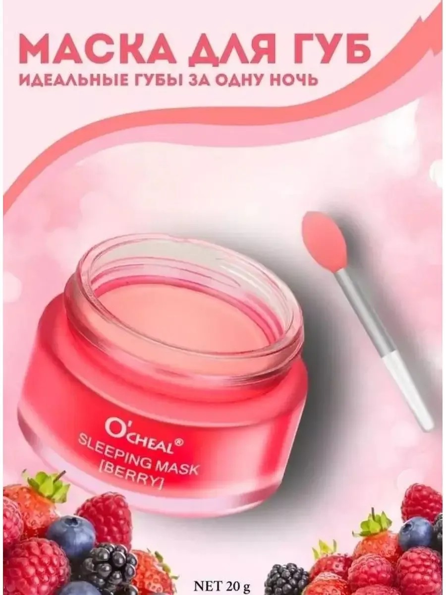 100% ORIGINAL. Бальзам- маска для губ с ароматом ягод O'cheal lip sleeping mask 20 г смягчает нежную кожу губ, способствует заживлению ранок и трещинок при регулярном использовании. Повышает эластичность и делает поверхность губ гладкой и мягкой. Оставляет на губах тонкую масляную плёнку, которая питает губы. В составе содержатся: масло ши для питания и смягчения нежной кожи губ, бета глюкан для активного увлажнения, экстракт ягод для насыщения витаминами. Бальзам для губ - это инновационная маска для губ. Гигиеническая помада для губ делает губы гладкими и упругими. Ночная маска для губ имеет неповторимый аромат. Комплекс из четырех разных ягод насыщает витаминами и оказывает антиоксидантное воздействие. Питающий бальзам для губ имеет приятный аромат ягод и нежную текстуру.