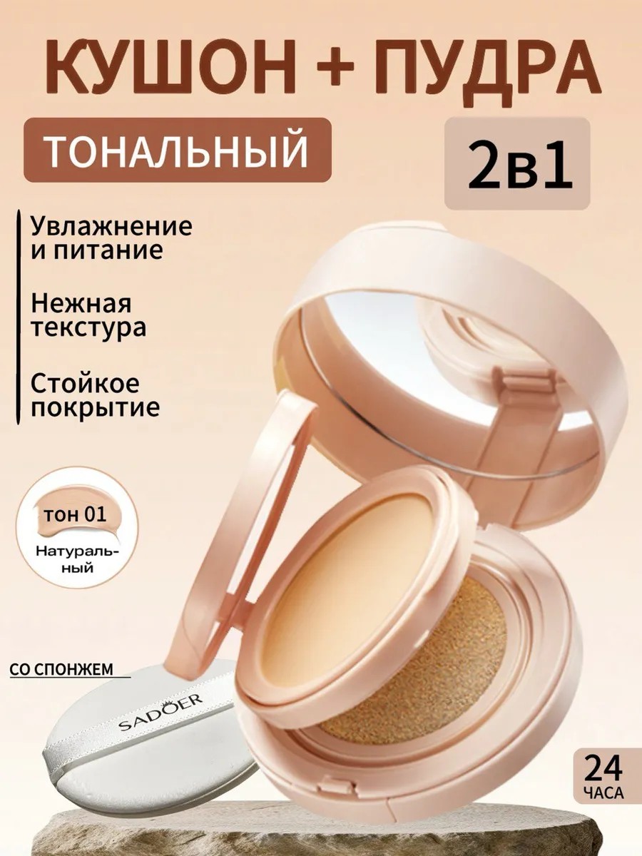 | Комплектация | Кушон для лица пудра 2 в 1 со спонжем тональный натуральный - 1 шт. |