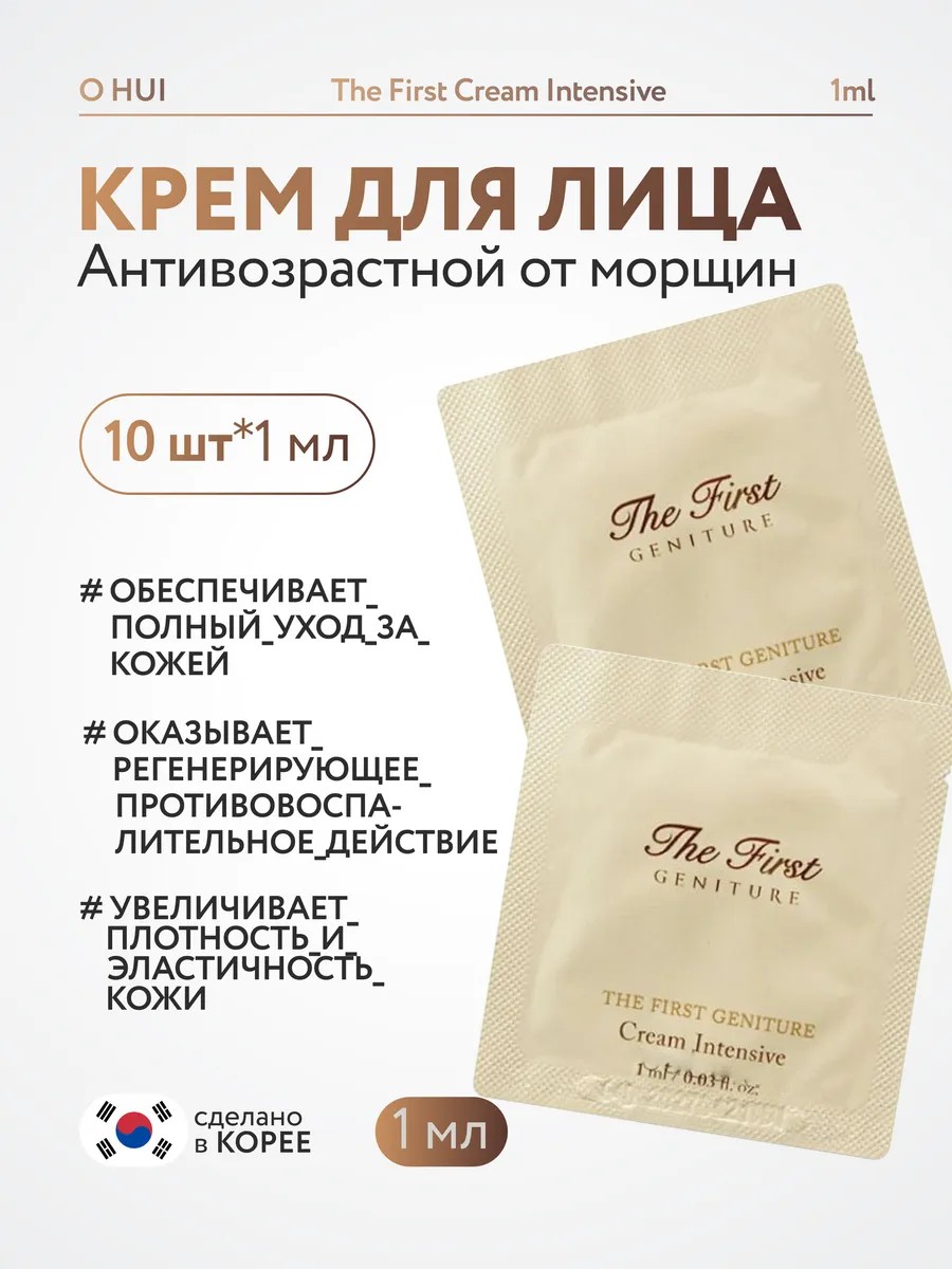 Крем для лица корейский антивозрастной от морщин O HUI The First Cream Intensive 1ml - высококонцентрированный крем, который интенсивно питает кожу и уменьшает видимые признаки старения. Премиальный, увлажняющий крем, питающий и омолаживающий кожу.