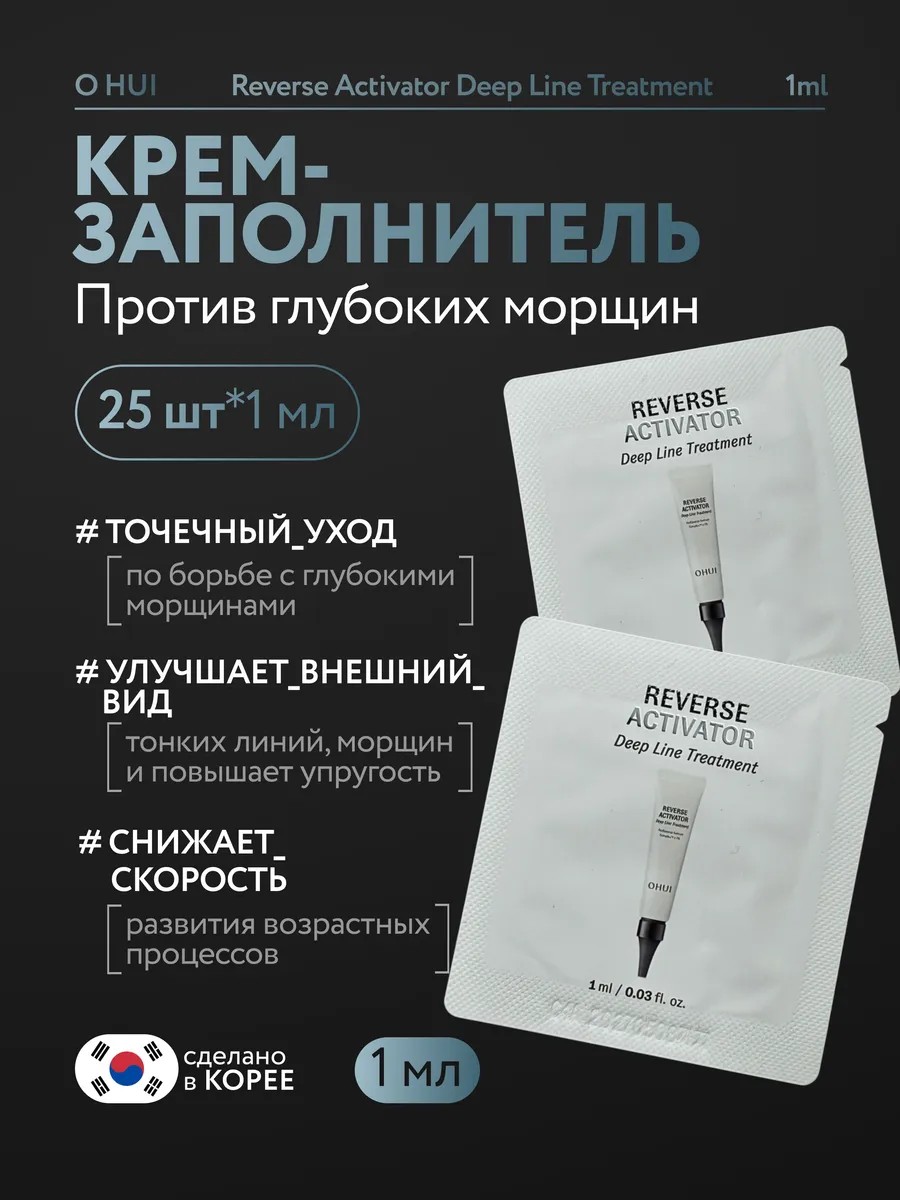Корейский крем-заполнитель против глубоких морщин O HUI reverse activator deep line treatment 1ml обеспечивает точечный уход по борьбе с глубокими морщинами, такими как носогубные складки, морщины на лбу и между бровями, морщины вокруг глаз.
