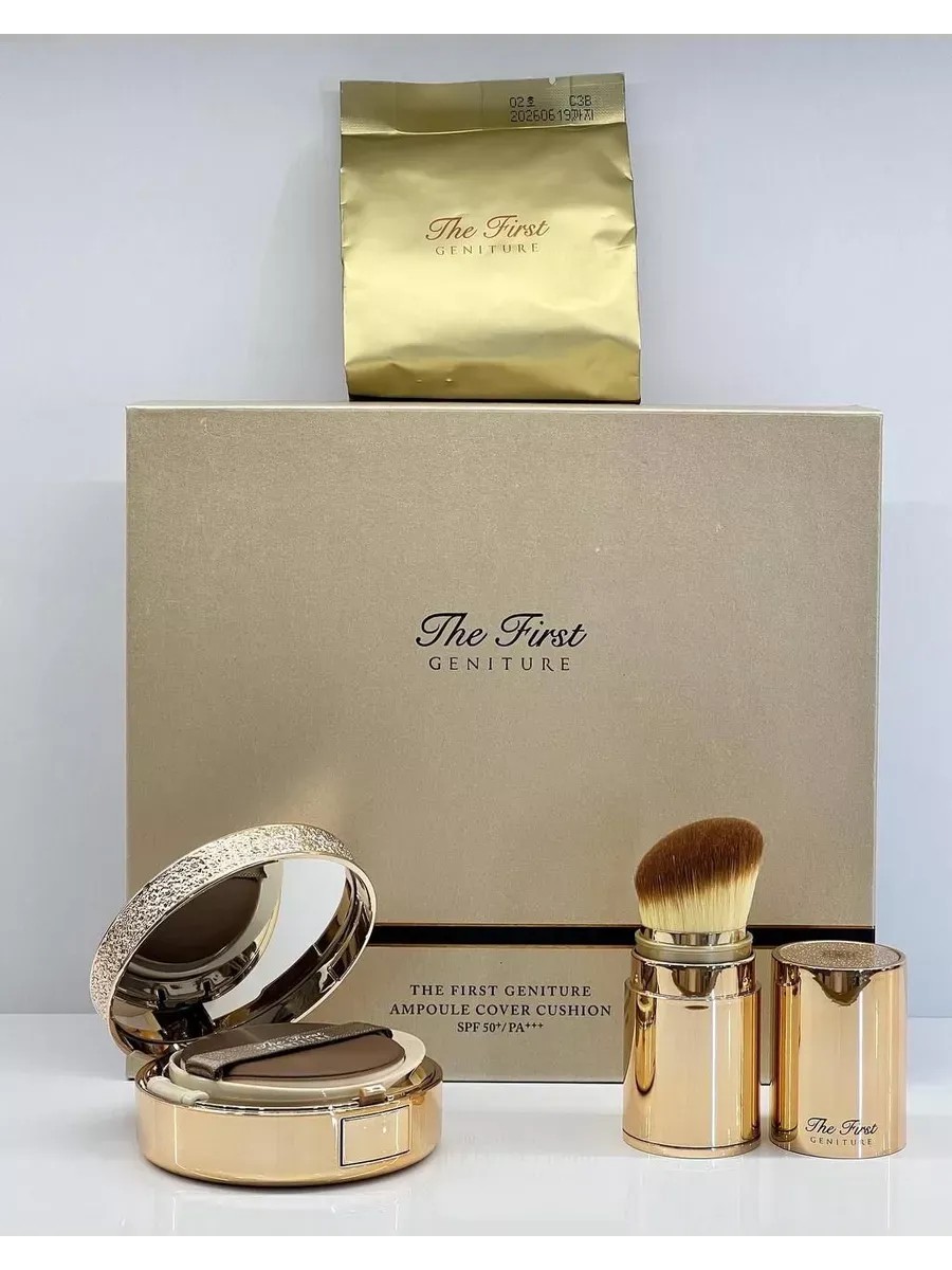 1.) КУШОН - THE FIRST GENITURE AMPOULE COVER CUSHION SPF 50 +/PA тон O2 Honey Beige 15 гр.