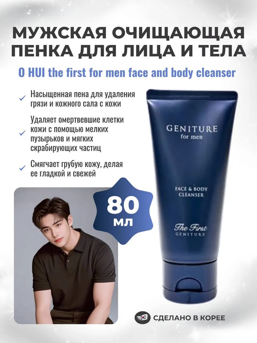 Мужская очищающая пенка для лица и тела корейская 80 мл O HUI the first for men face and body cleanser 80ml улучшает качество мужской кожи и борется с морщинами. Пенка качественно очищает кожу от загрязнений. После использования не оставляет сухости и чувство стянутости. Оставляет кожу увлажненной. Освежает цвет лица, наполняет энергией.