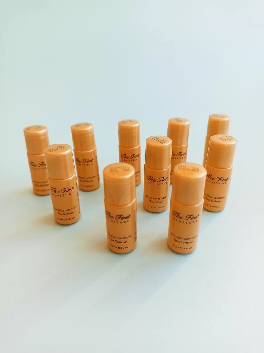 Mini facial softener samples stimulate every skin cell to activate and treat sagging, dullness, loss of elasticity and firmness, dryness, irritation, rosacea, and rosacea. The First Geniture Korean luxury samples contain 83 ingredients (peptides) that restore elasticity, density, and a healthy complexion. Key ingredients in the Korean luxury samples include Adenosine and Cyanocobalamin (Vitamin B12).