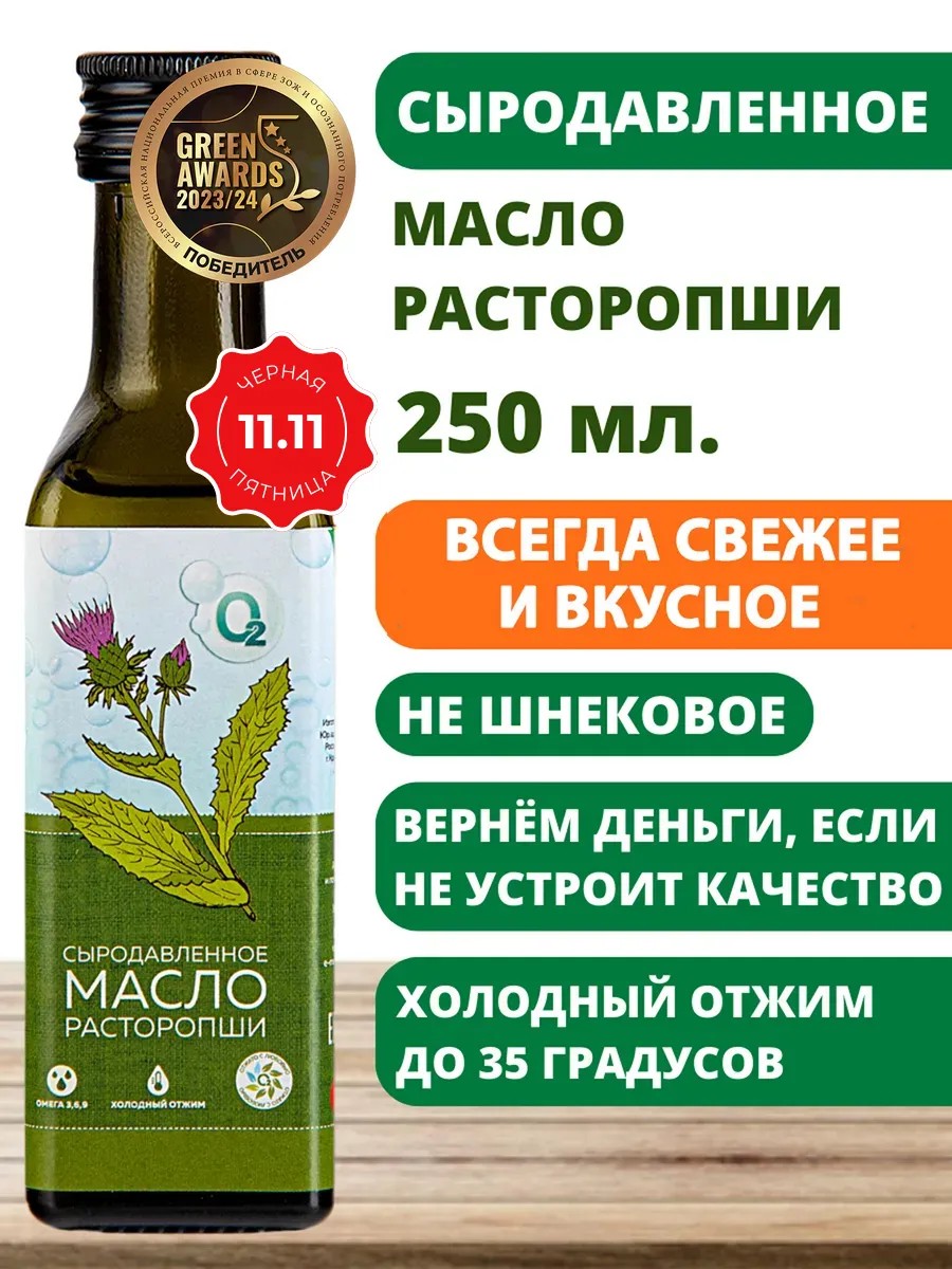 Это натуральное растительное масло первого отжима из семян расторопши. Процесс отжима осуществляется на гидравлическом прессе, что позволяет сохранить все полезные свойства и витамины этого удивительного продукта. Масло расторопши не содержит ГМО, консервантов, ароматизаторов и других добавок - только чистота и натуральность. Масло расторопши сыродавленное нерафинированное обладает уникальными свойствами, благотворно влияющими на организм.