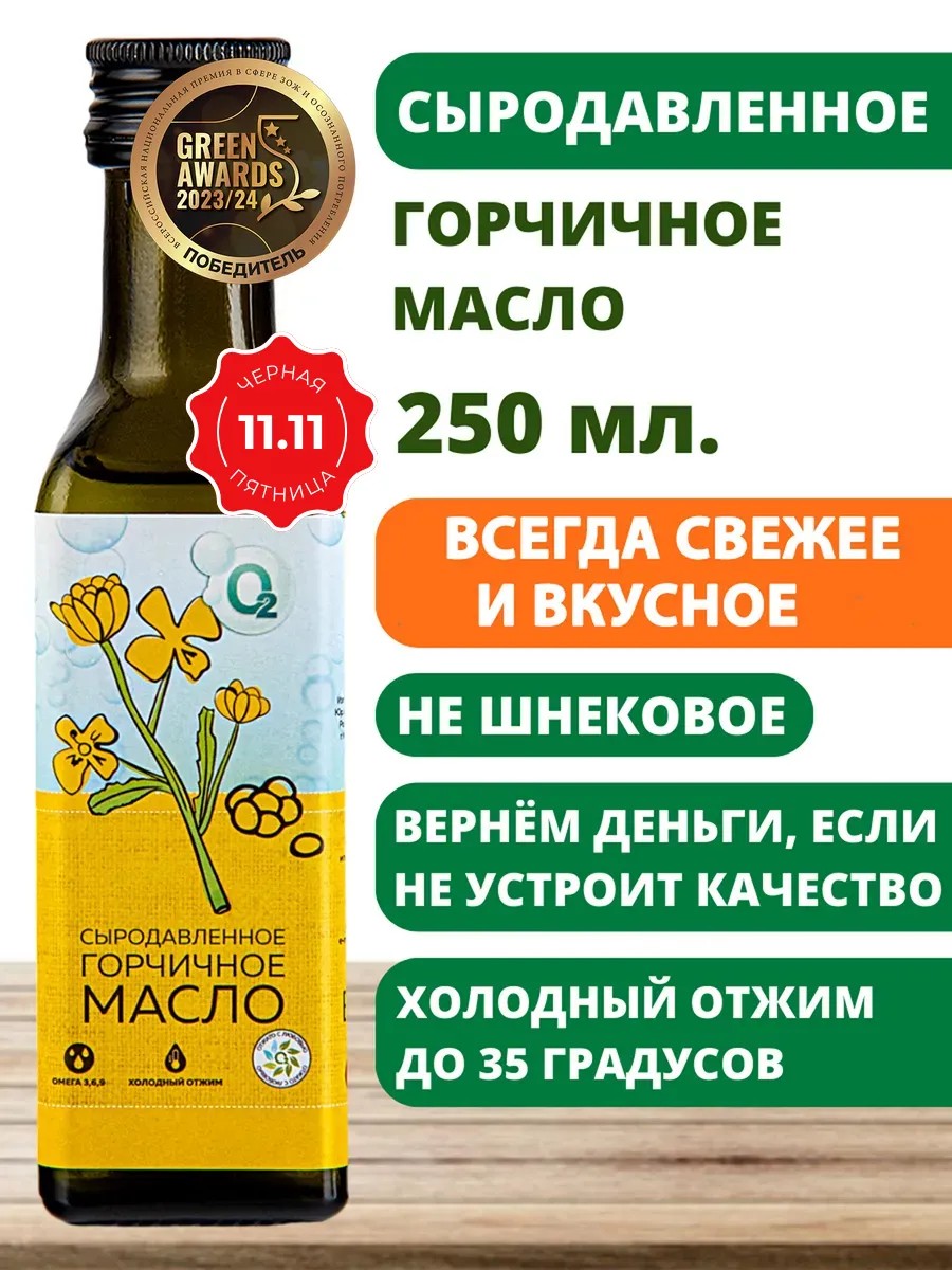 О2 НАТУРАЛЬНЫЕ ПРОДУКТЫ Горчичное масло 250 мл сыродавленное холодного отжима