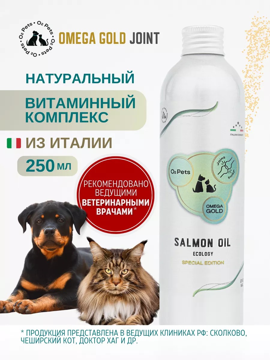 Бренд О2Pets представляет товар - витаминные добавки премиум класса на основе масла дикого норвежского лосося, являющимся главным источником Омега 3 и Омега 6 жирных кислот. Натуральный состав, усиленный специальными ингредиентами, витаминами, антиоксидантами отличает нас от дешевых аналогов, в составе которых просто лососевое масло (рыбий жир) полученное из фермерской рыбы. Составы выверены ветеринарными диетологами и произведены в Италии.