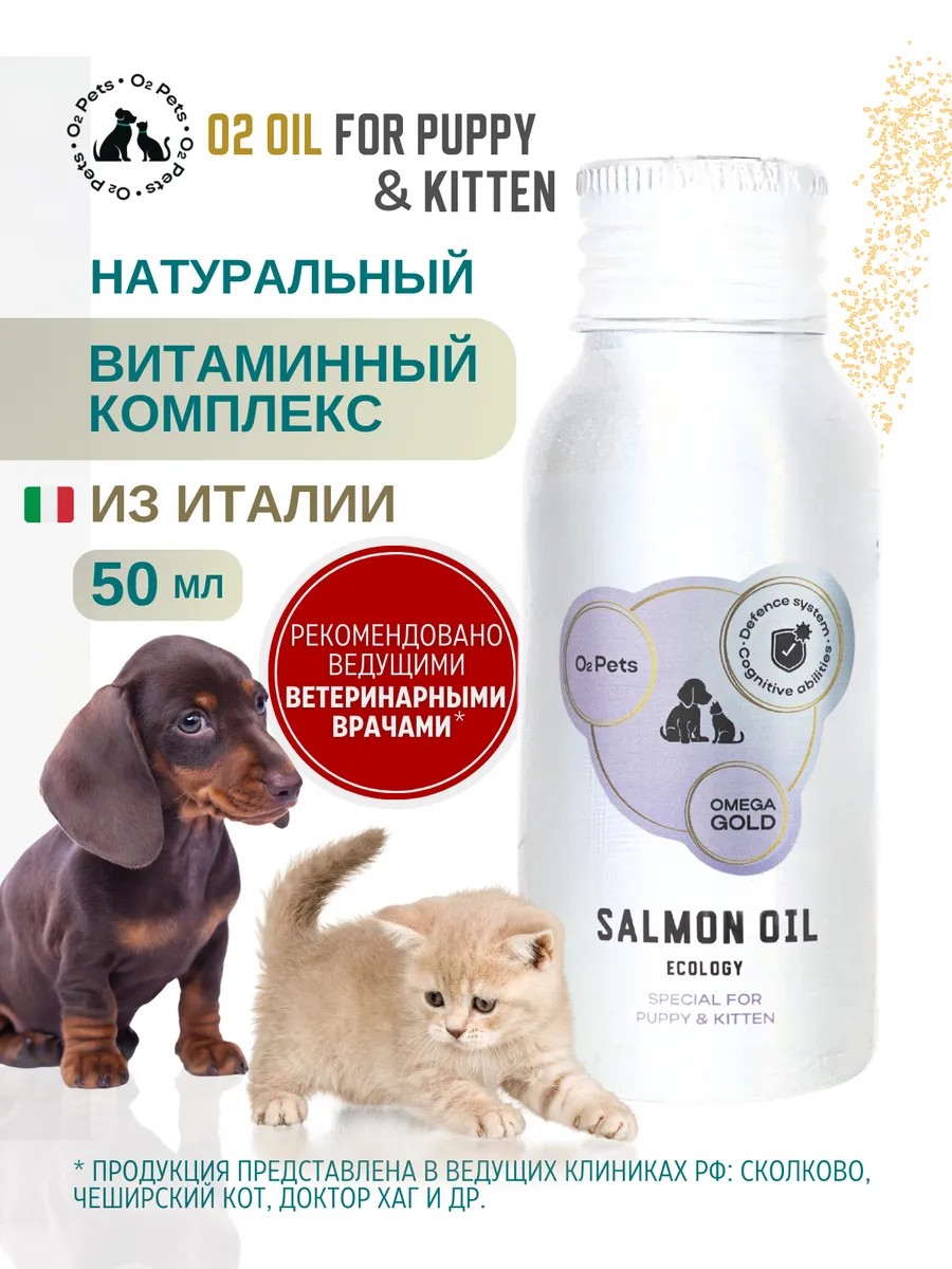Бренд О2Pets представляет товар - витаминные добавки премиум класса на основе масла дикого норвежского лосося, являющимся главным источником Омега 3 и Омега 6 жирных кислот. Натуральный состав, усиленный специальными ингредиентами, витаминами, антиоксидантами отличает нас от дешевых аналогов, в составе которых просто лососевое масло (рыбий жир) полученное из фермерской рыбы. Составы выверены ветеринарными диетологами и произведены в Италии.