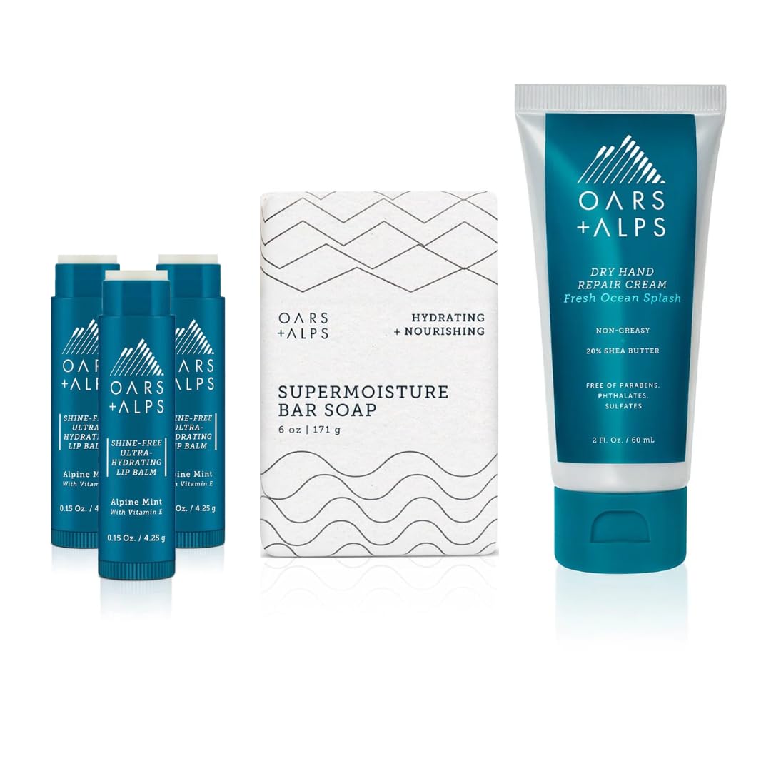 Oars + Alps Winter Care Bundle Includes Hand Repair Cream Alpine Mint Lip Balm and Supermoisture Bar Soap
