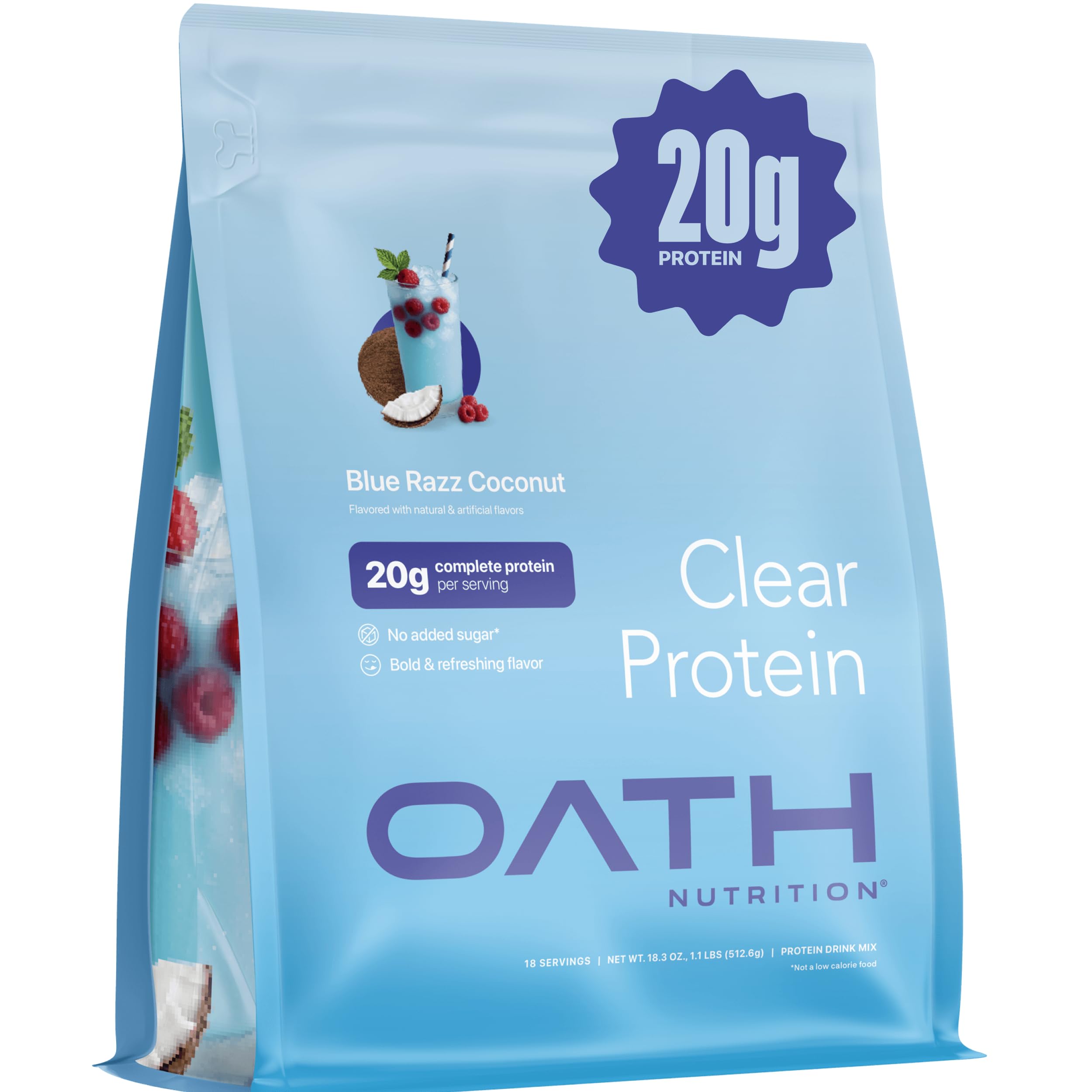 Oath Nutrition Clear Whey Isolate Protein Powder Blue Razz Coconut 20g Complete Protein per Serving No Added Sugar Grass-Fed 18 Servings