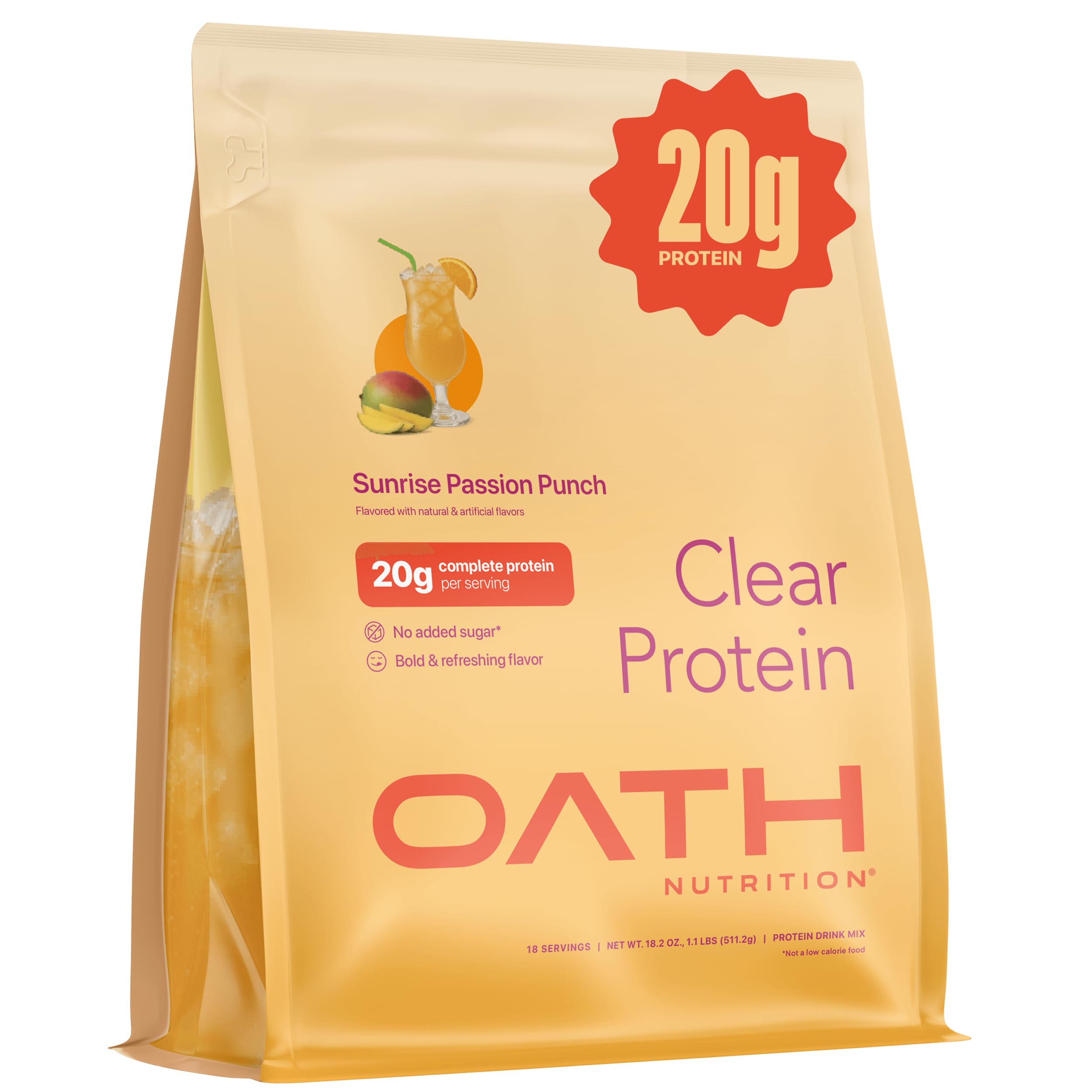 Oath Nutrition Clear Whey Isolate Protein Powder Sunrise Passion Punch 20g Complete Protein per Serving No Added Sugar Grass-Fed 18 Servings