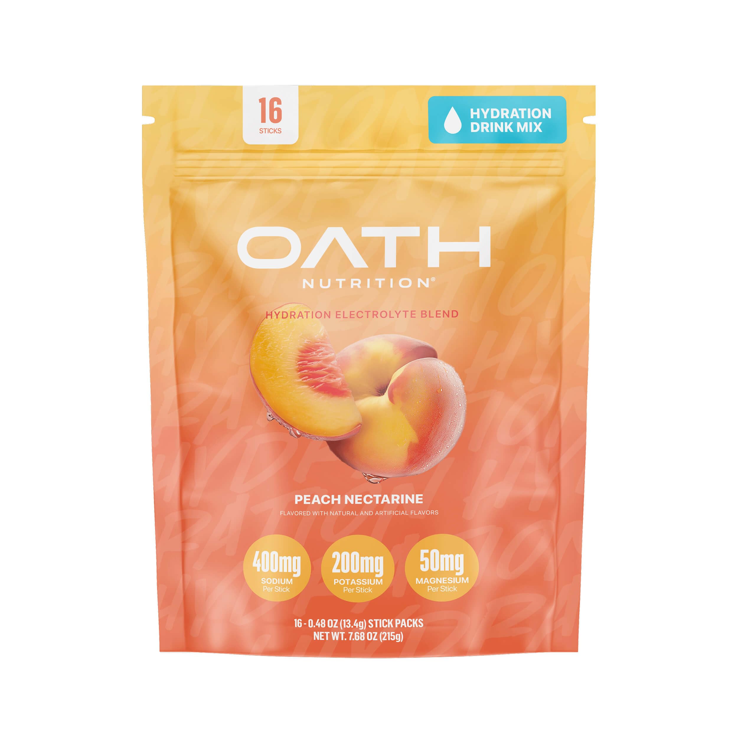 Oath Nutrition Hydration Electrolyte Powder Complete Electrolyte Blend for Rapid Hydration and Muscle Support 16 Single-Serve Packets Peach Nectarine