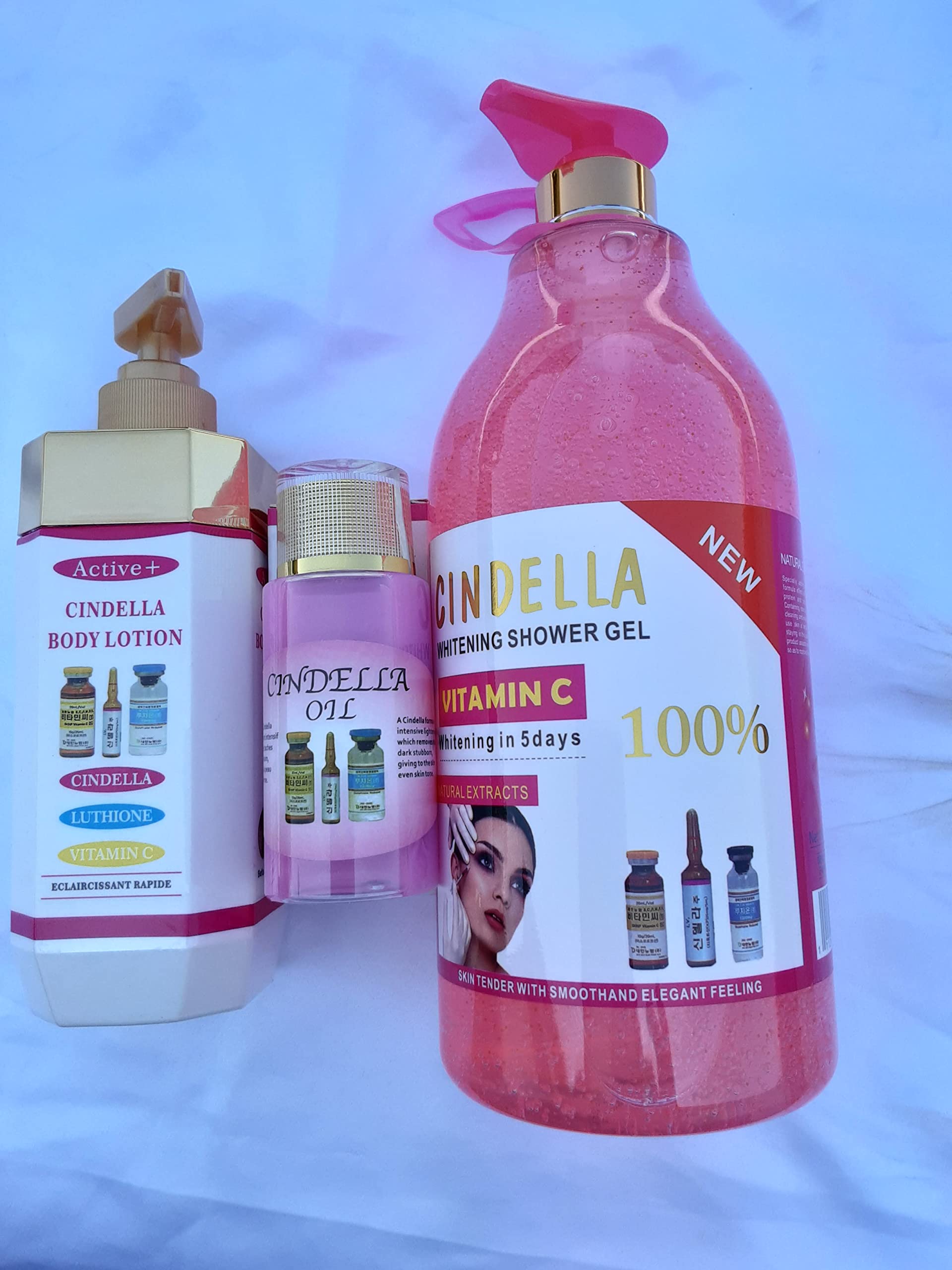 LAIT POUR LE CORPS CINDELLA ACTIVE , 500ML. LHUILE CINDELLA 120ML, GEL DOUCHE CINDELLA 1900ML