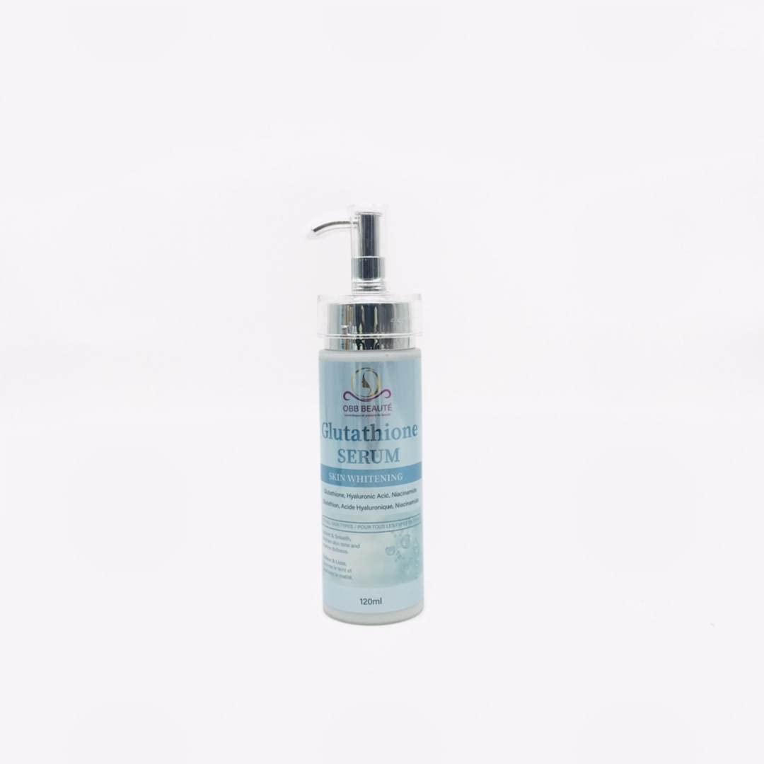 This serum with glutathione, hyaluronic acid, and niacinamide is a spot corrector, anti-wrinkle treatment, and dark spot remover. It smooths, brightens, and softens the skin, and also helps conceal dark circles. Wash and dry your face, preferably with OBBBeauté Glutathione Soap. Pour 2 to 3 drops onto the palm of a clean hand and use your fingertips to massage onto your face and neck until absorbed. The Obbbeauté Glutathione Face Serum is a skincare product formulated with ingredients such as glutathione, hyaluronic acid, and niacinamide. This serum aims to provide whitening, brightening, and hydrating benefits for the skin. Glutathione is a powerful antioxidant that helps protect the skin against free radicals and environmental damage. It is also known for its brightening properties, which can help reduce the appearance of dark spots and even out skin tone. Hyaluronic acid is a hydrating ingredient that helps maintain skin moisture by retaining water within skin cells. This can help improve skin elasticity and reduce the appearance of fine lines and wrinkles. Niacinamide, also known as vitamin B3, is a versatile ingredient that can help reduce the appearance of dark spots, brighten skin tone, and improve skin texture. It can also help regulate sebum production, making it an ideal choice for acne-prone skin. To use this serum, it is recommended to apply it to clean, dry skin, gently massaging until fully absorbed. It can be used morning and evening, followed by a moisturizer if needed. Please note that results may vary from person to person. DIRECTIONS FOR USE Wash and dry your face. Pour 2 to 3 drops onto the palm of a clean hand and use your fingertips to massage onto your face and neck until absorbed. Can be used morning and evening.Facial serum with glutathione, hyaluronic acid and niacinamide.SERUM VISAGE GLUTATHIONE OBB BEAUTÉ 120ml, SERUM BLANCHISSANT, ÉCLAIRCISSANT au Glutathione, acide hyaluronique et niacinamideDESCRIPTION DU PRODUIT DESCRIPTION DU PRODUIT Ce serum au Glutathione, acide hyaluronique, et niacinamide est un anti-tache , anti-rides et dissolvant de taches brunes , il lisse la peau, l illumine et la rend très douce, c est aussi un anti cernes. Laver et secher votre visage, de préférence avec le savon glu glutathione OBBBeauté. Versez 2 à 3 gouttes sur la paume d une main propre et utiliser le bout des doigts pour masser le visage et le cou jusqu'à absorption aider? Le sérum visage Glutathione Obbbeauté est un produit de soin de la peau formulé avec des ingrédients tels que le glutathione, l'acide hyaluronique et la niacinamide. Ce sérum vise à offrir des bienfaits blanchissants, éclaircissants et hydratants pour la peau. Le glutathione est un antioxydant puissant qui aide à protéger la peau contre les radicaux libres et les dommages environnementaux. Il est également réputé pour ses propriétés éclaircissantes, qui peuvent aider à réduire l'apparence des taches sombres et à uniformiser le teint de la peau. L'acide hyaluronique est un ingrédient hydratant qui aide à maintenir l'hydratation de la peau en retenant l'eau dans les cellules cutanées. Cela peut aider à améliorer l'élasticité de la peau et à réduire l'apparence des ridules et des rides. La niacinamide, également connue sous le nom de vitamine B3, est un ingrédient polyvalent qui peut aider à réduire l'apparence des taches sombres, à éclaircir le teint et à améliorer la texture de la peau. Elle peut également aider à réguler la production de sébum, ce qui en fait un choix idéal pour les peaux sujettes à l'acné. Pour utiliser ce sérum, il est recommandé de l'appliquer sur une peau propre et sèche, en massant doucement jusqu'à absorption complète. Il peut être utilisé matin et soir, suivi d'une crème hydratante si nécessaire. Veuillez noter que les résultats peuvent varier d'une personne à l'autre MODE D'EMPLOI Laver et sécher votre visage. Verser 2 à 3 gouttes sur la paume d'une main propre et utiliser le bout des doigts pour masser le visage et le cou jusqu'à absorption. Peut être utilisé matin et soir.Serum visage au glutathione, acide hyaluronique et niacinamide.